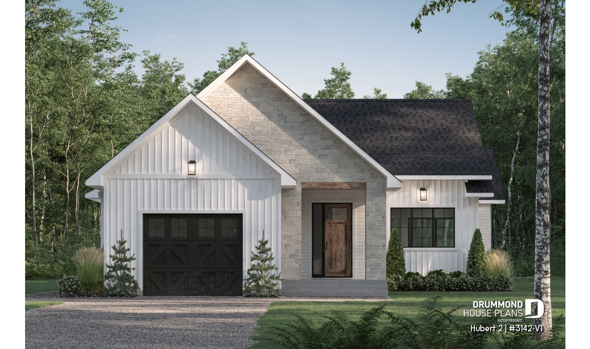 A smaller version of the HUBERT plan (#3142), now featuring an added garage for greater convenience.