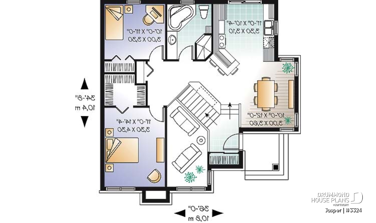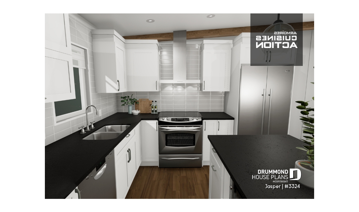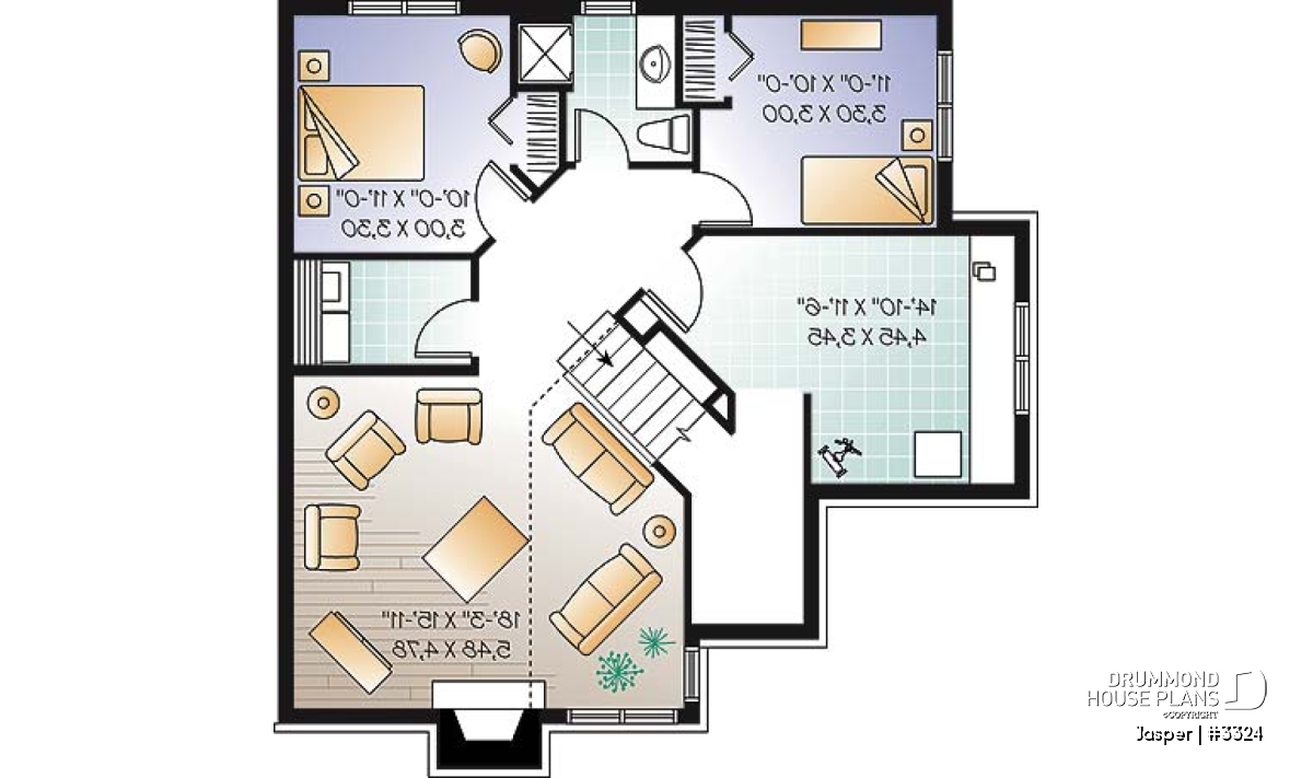 This is an original concept with four (4) bedrooms. You are looking for an original house plan, well lighted and containing four (4) bedrooms? Check out this model. First of all, notice that for its very uncommon voluminous exterior and its large corner-wise fenestration. As you enter this one we notice the openness of its spaces, horizontally as well as vertically. Moreover, we are captured by this huge family room, even though it has been designed in the basement. Its luminous environment is due to the abundant corner fenestration and is very cozy with the presence of a fireplace that is well centered and very comfortable with the numerous seats it offers. Always in the basement, we appreciate the two (2) bedrooms measuring 11’ x 10’ each, a shower room, laundry room and a duo workshop-storage area that is well lighted as well as a full bathroom with an independent shower that is the enlarged format. There is also two (2) good-sized bedrooms of which includes the master bedroom with its walk-in closet and corner fireplace which can be conceivable due to the location of the chimney. Is this not an original concept that’s rather enticing?