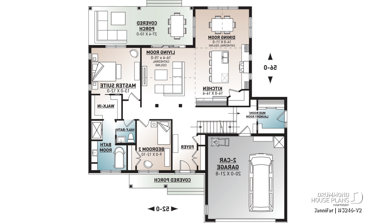 Country-style single-story home plan with a double garage, combining charm and functionality.