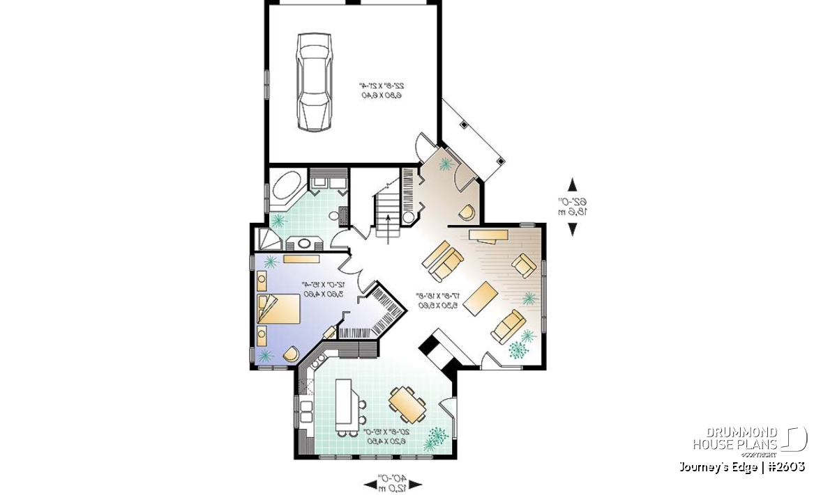 If sited with the double garage facing forward, this model sits tidily on a narrow lot and still provides a dramatic angled entry. Turn ninety degrees and the entry is equally dramatic, but the garage virtually disappears as a side entry!