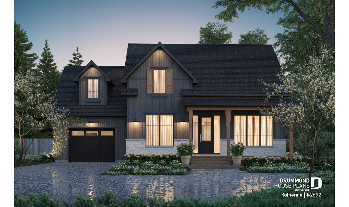 front - BASE MODEL - Modern Farmhouse House Plan with Maibec Stone, 3 Bedrooms and Garage - Katherine