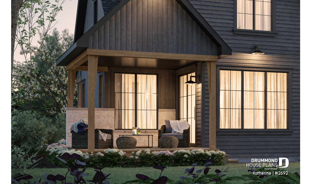 2nd level - Modern Farmhouse House Plan with Maibec Stone, 3 Bedrooms and Garage - Katherine