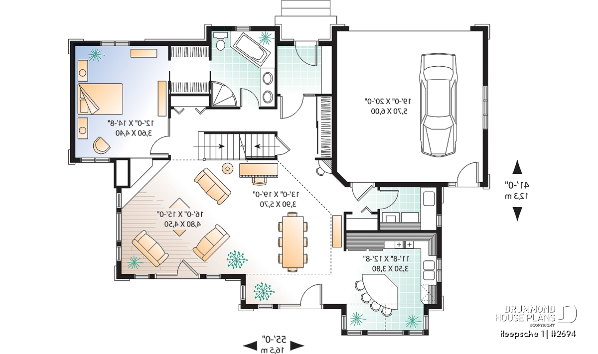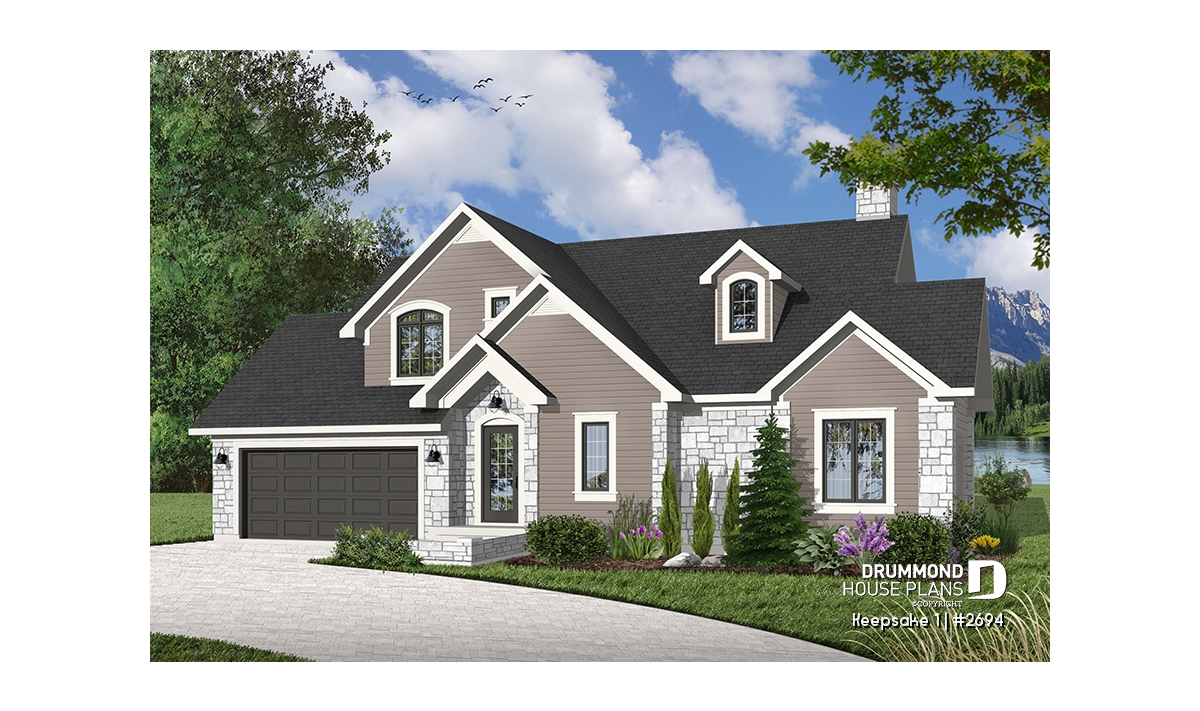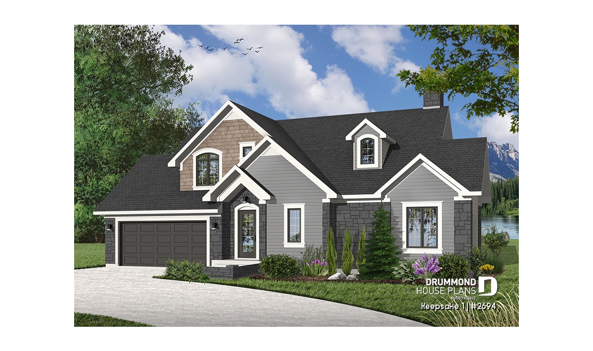 It’s hard to believe, but this main level offers a panoramic view from the kitchen, breakfast area, dining room, living room and the master bedroom, thus meeting the frequent requests from many future homeowners for a design which maximizes outside views for panoramic lots on a lake, riverside, or any other panoramic points of view. In addition, Drummond Designs proposes model 3916, with finished basement, for those whose building site slopes towards the rear.