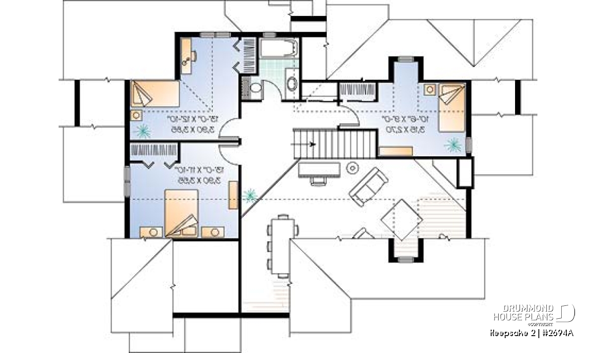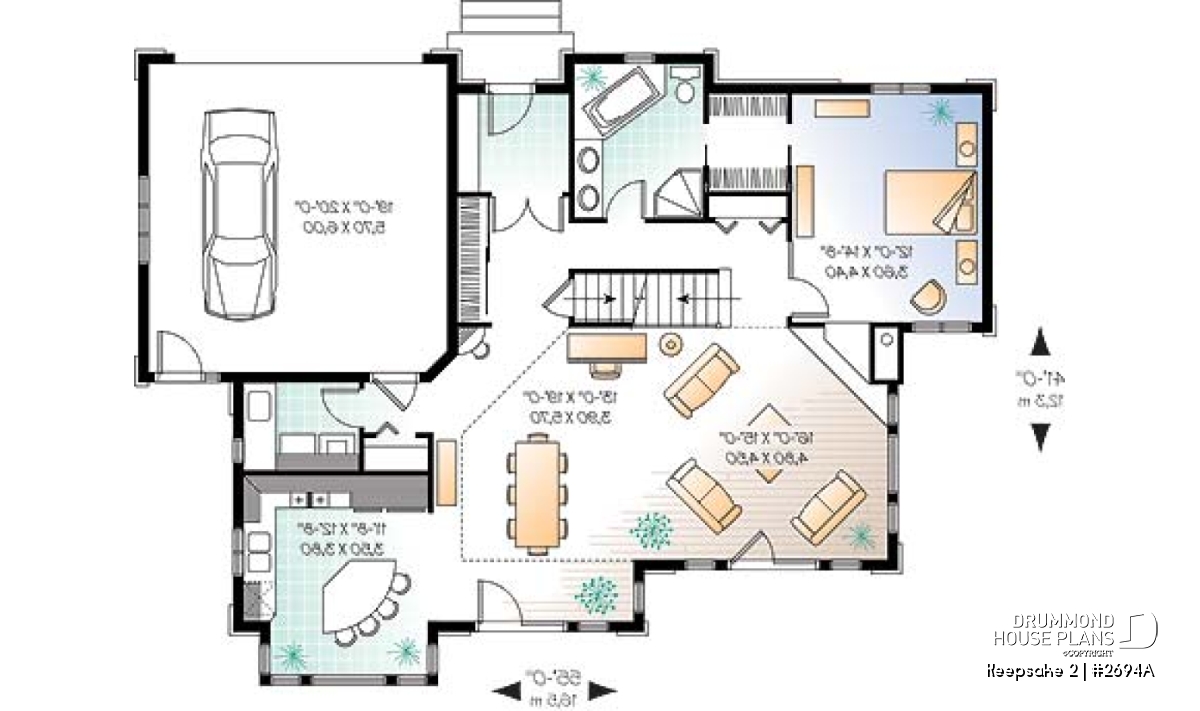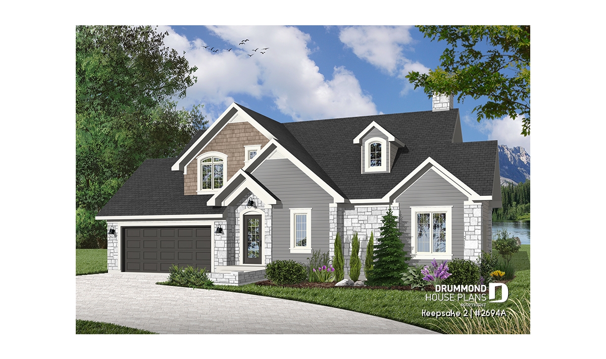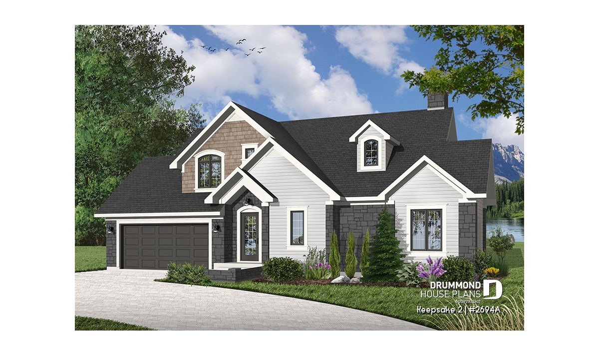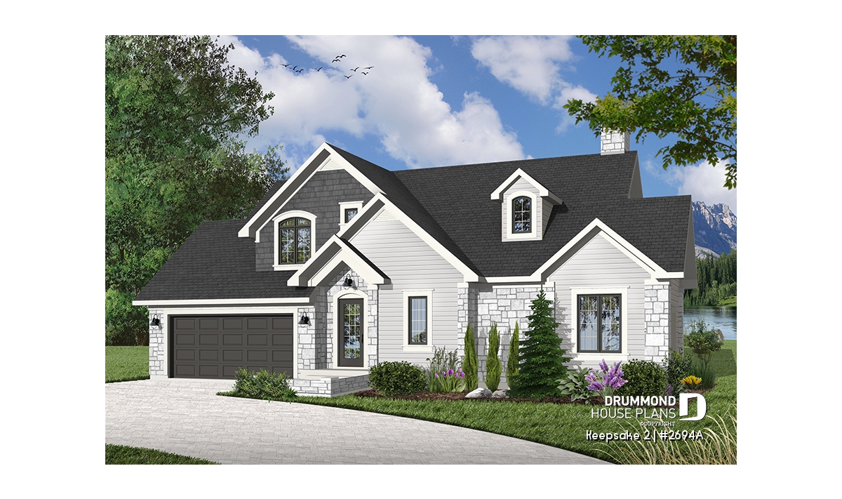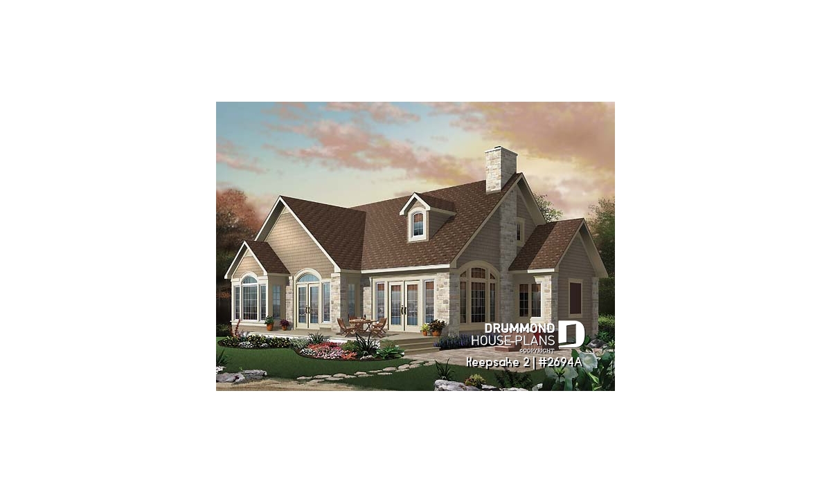It’s hard to believe, but this main level offers a panoramic view from the kitchen, breakfast area, dining room, living room and the master bedroom, thus meeting the frequent requests from many future homeowners for a design which maximizes outside views for panoramic lots on a lake, riverside, or any other panoramic points of view. In addition, Drummond Designs proposes model 6916, with finished basement, for those whose building site slopes towards the rear.