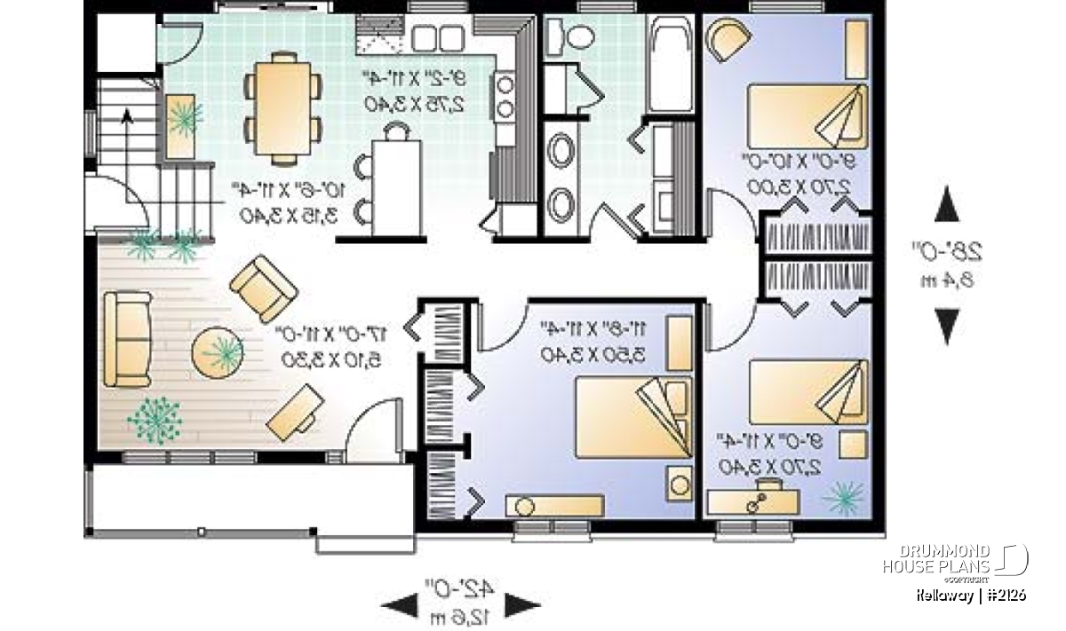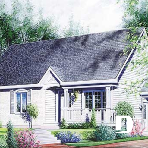 Shuttered windows, a simple roofline, covered front porch and covered side entry dress up this quaint country cottage. Step in from the covered front porch and stow your coat in the front closet. An open living triangle is created by a living room open to the dining room and kitchen. A peninsula bar provides additional work space and casual meal space. Patio doors off the dining area provide a quick escape to the back yard.
