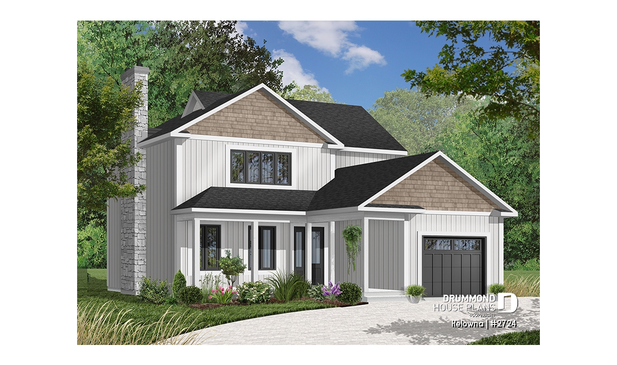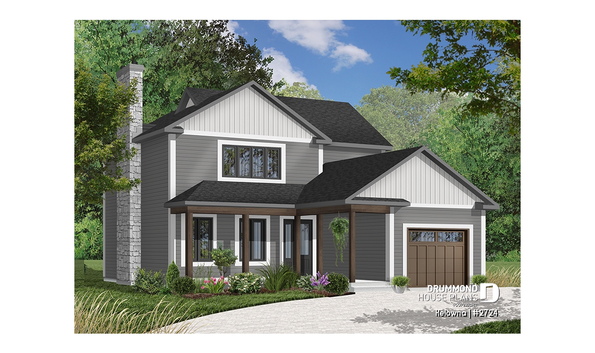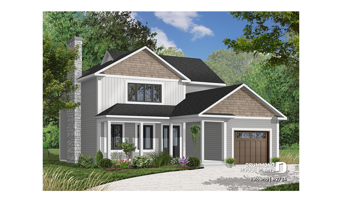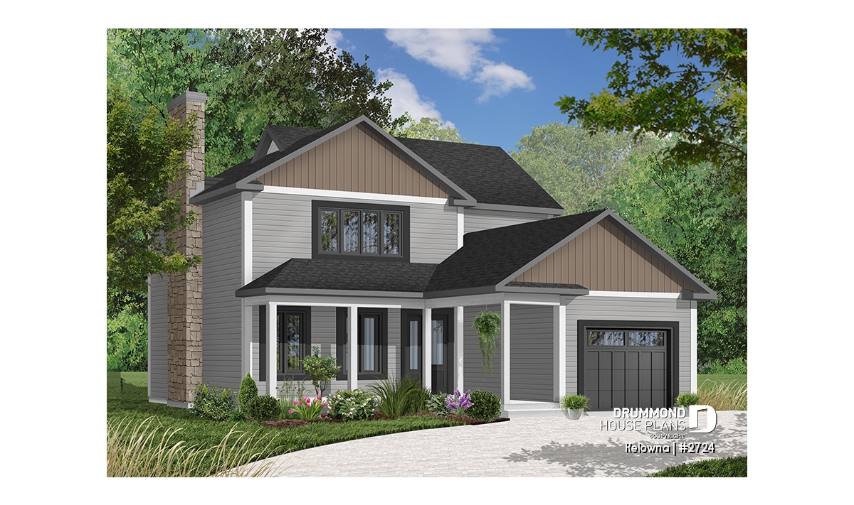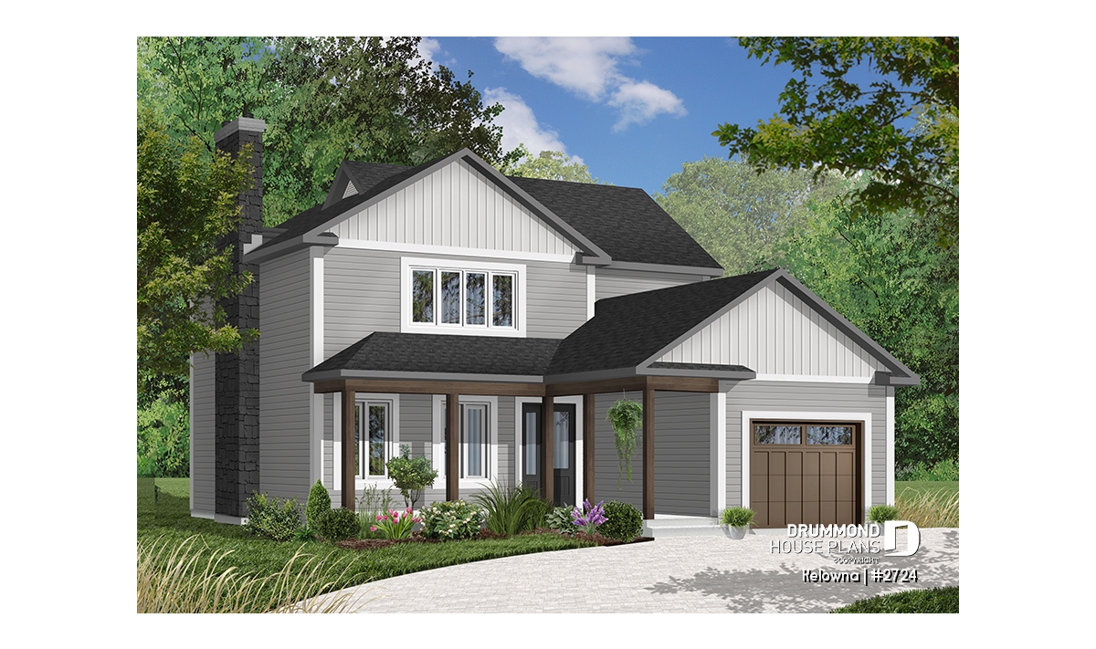Fireplace with possible exit in basement, sloped ceiling in master bedroom, covered front balcony, service doors on side of garage and access to home, generous fenestration illuminates stairwell, laundry facilities near kitchen, service door and patio door near kitchen.