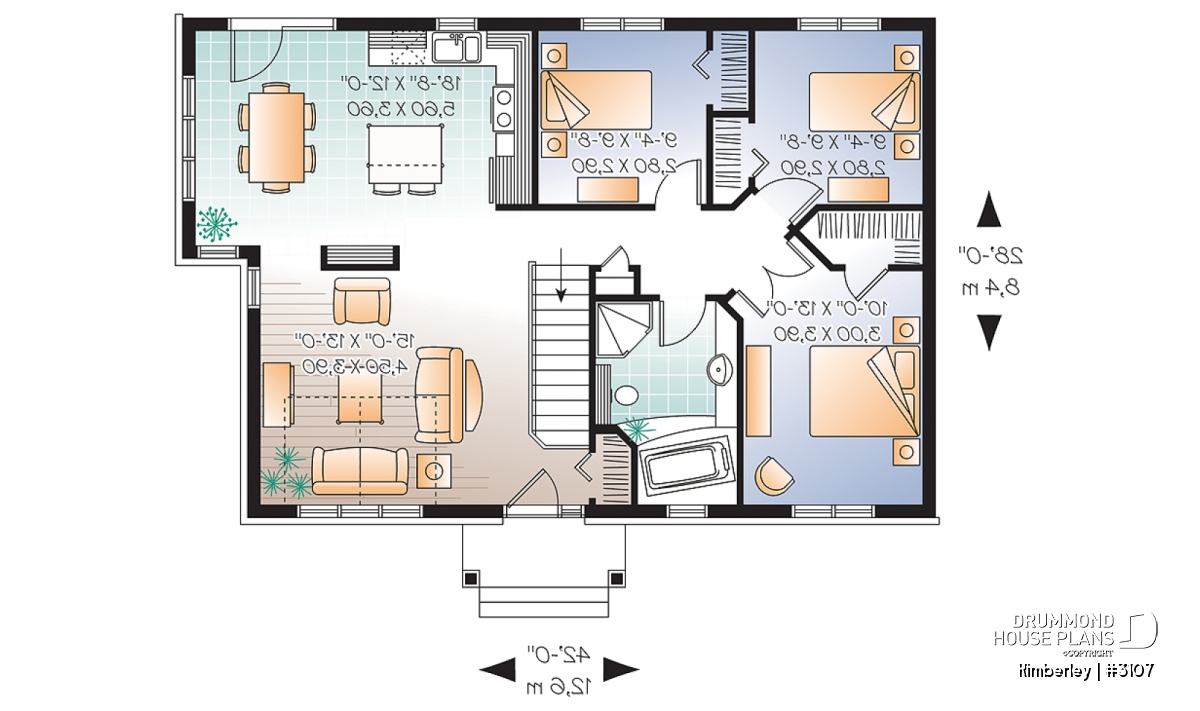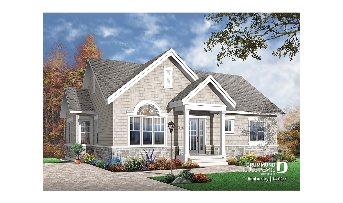 Inside, we find a flowing semi-open activity area, with the living room highlighted by a partially vaulted ceiling to capture light from the arched feature window. The kitchen with island is within easy reach of a charming dining area which is surrounded by windows on three sides. The bedroom area is separate from the main living area and boasts three comfortable bedrooms including a forward-oriented master bedroom with large closet. The bathroom features a corner shower and independent bath.