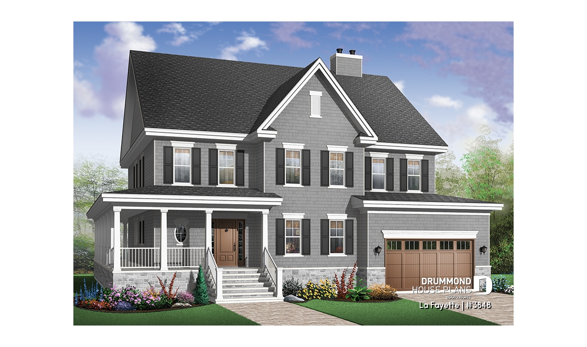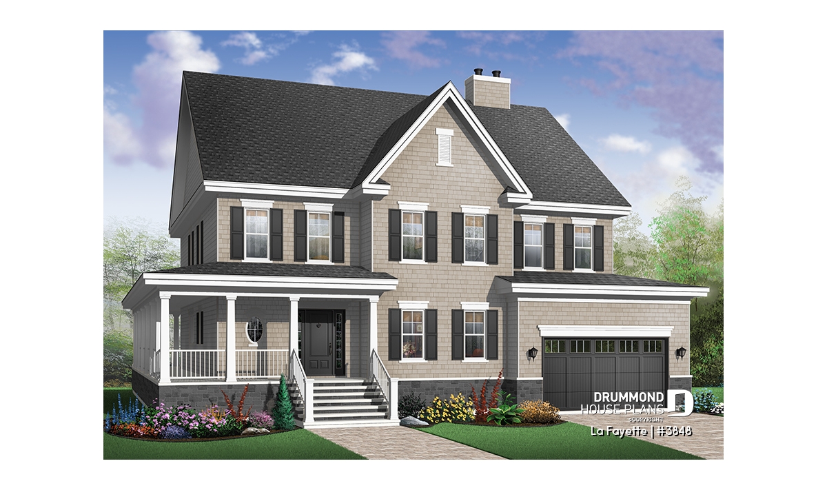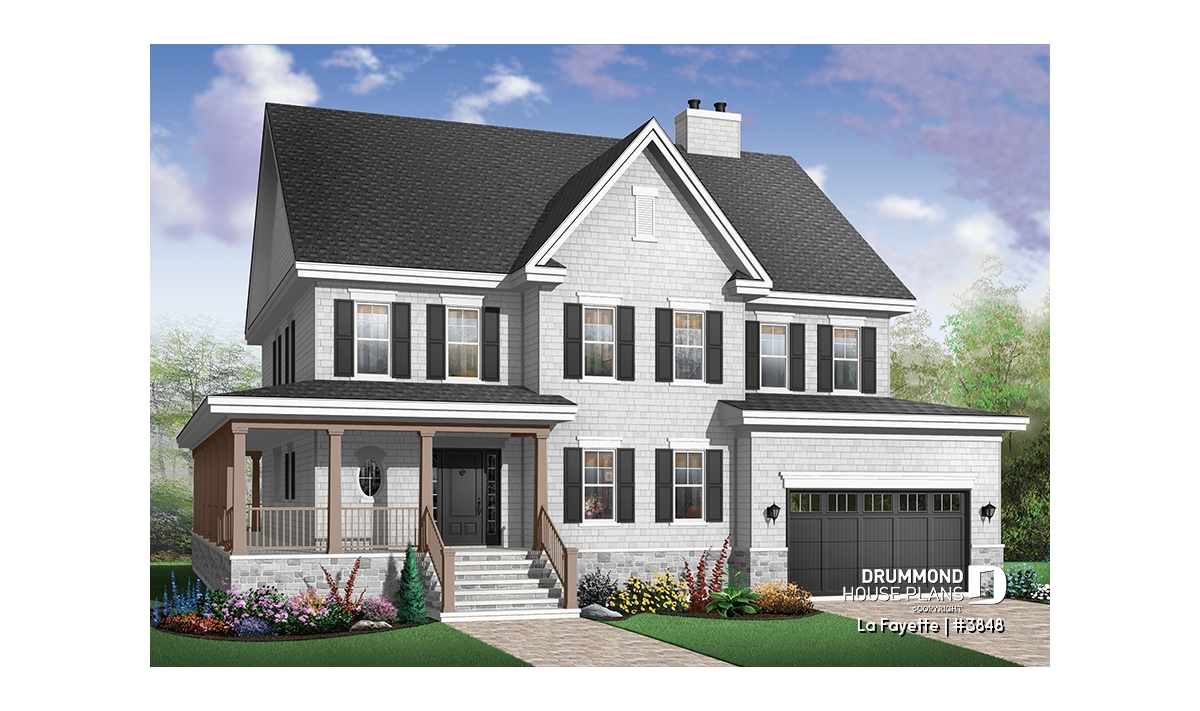 Designed with symmetry that offers balance outside, a double garage and a beautiful, three sided covered porch this stunning cottage offers timeless design and a comfortable 3,600 sq. ft. floor plan with a basement that can be finished to suit your specific needs.