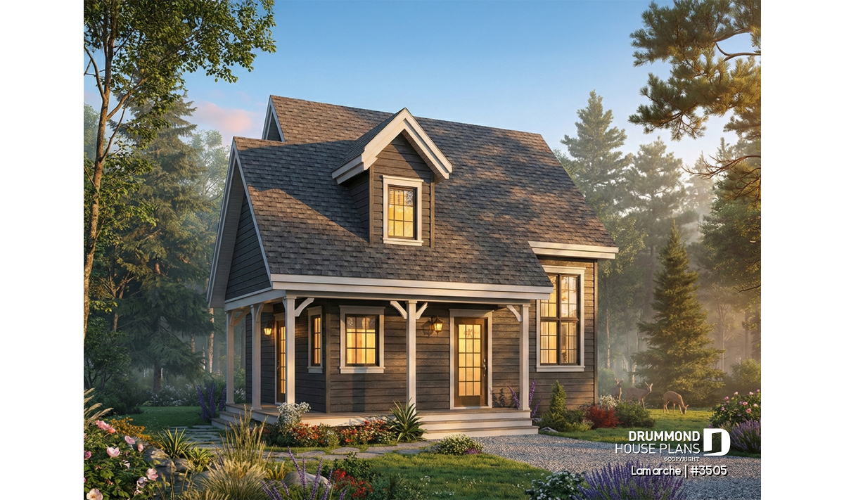 With its smart design and efficient layout, the LAMARCHE house plan (#3505) is an excellent choice for those seeking a compact country-style home that is both functional and easy to build while maintaining timeless architectural appeal.