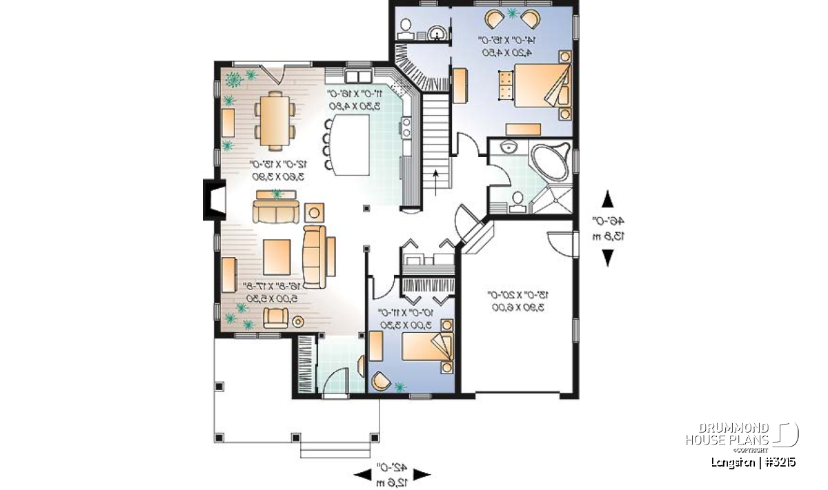 First and foremost with a very original exterior with exotic-looking roof cracks, arched beams on the front porch and bright colors on the walls and roof, this bungalow home plan offers an equally original interior design. So let's get in without further ado!
