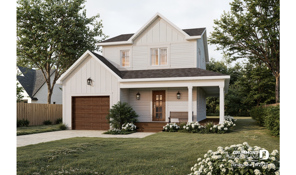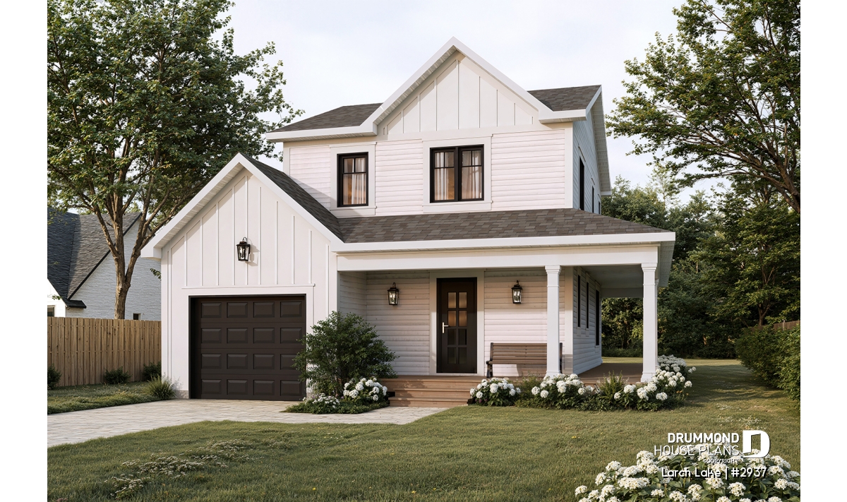 Thoughtfully designed and highly adaptable, the Larch Lake (#2937) is a warm, inviting farmhouse plan that meets today’s needs while offering flexibility for tomorrow.