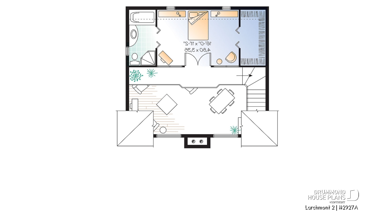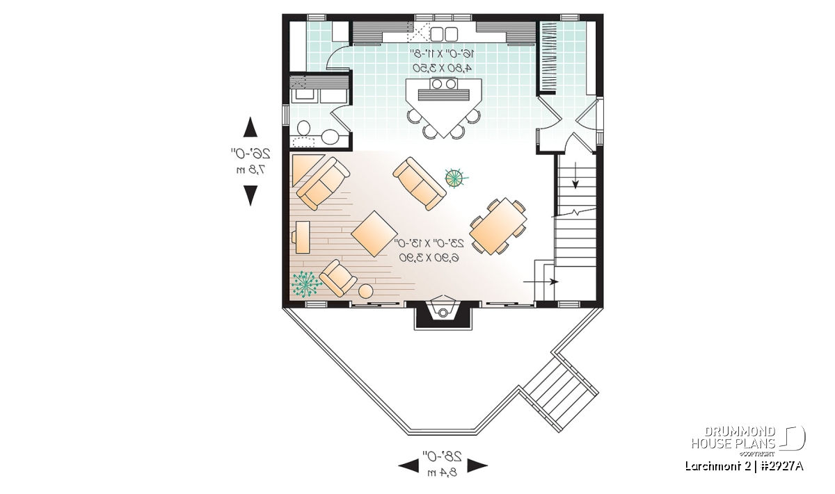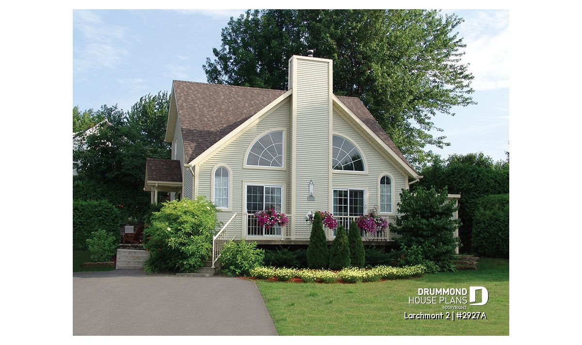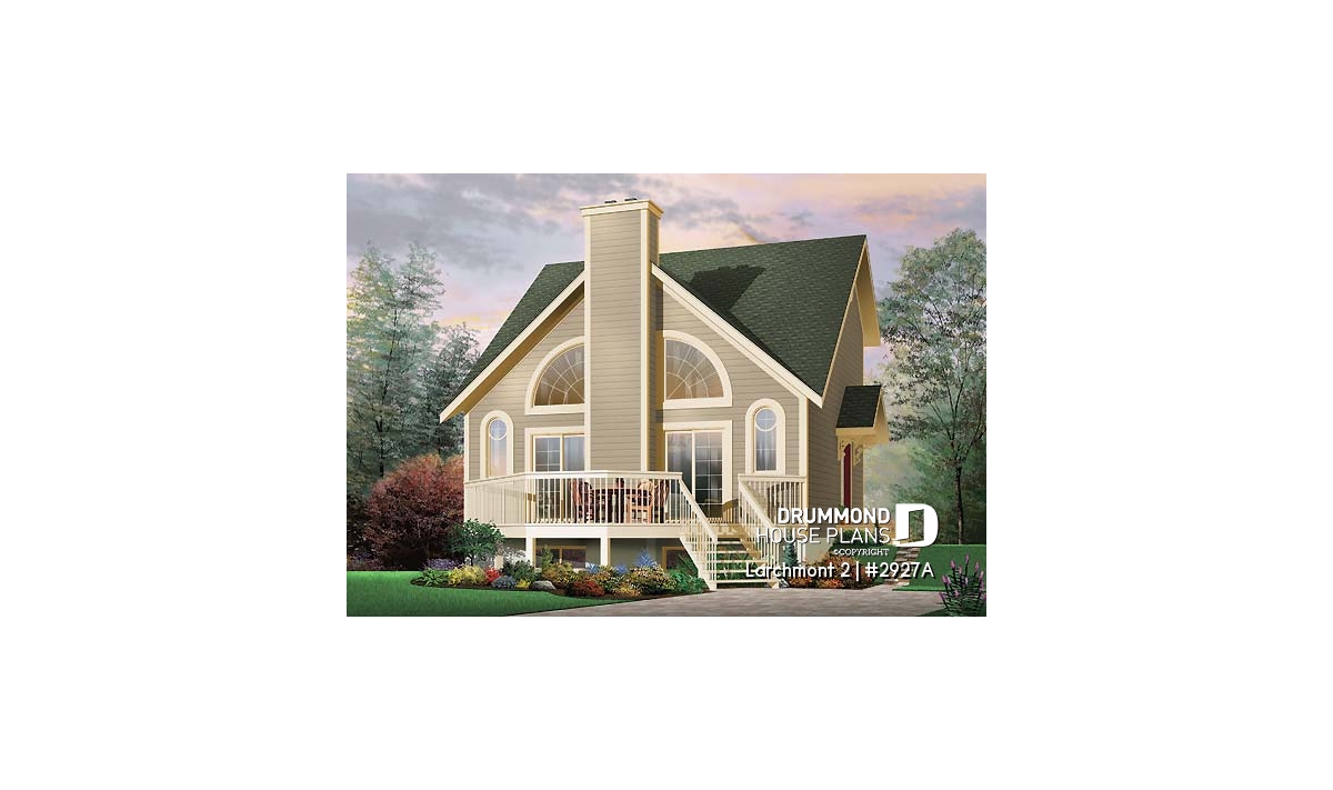 Among the chalet designs proposed by Drummond Designs, this cost-conscious model is one of the most popular, with a balanced exterior and original fenestration evenly distributed on either side of a central fireplace, and a very open interior. Let’s take a closer look.