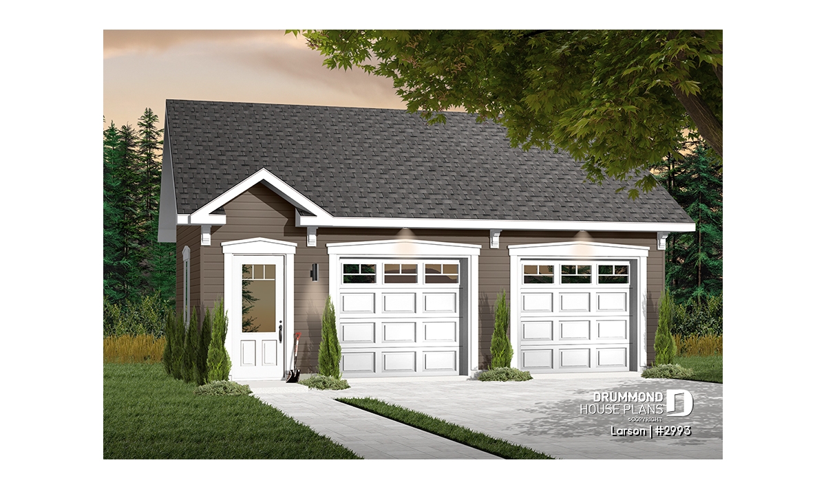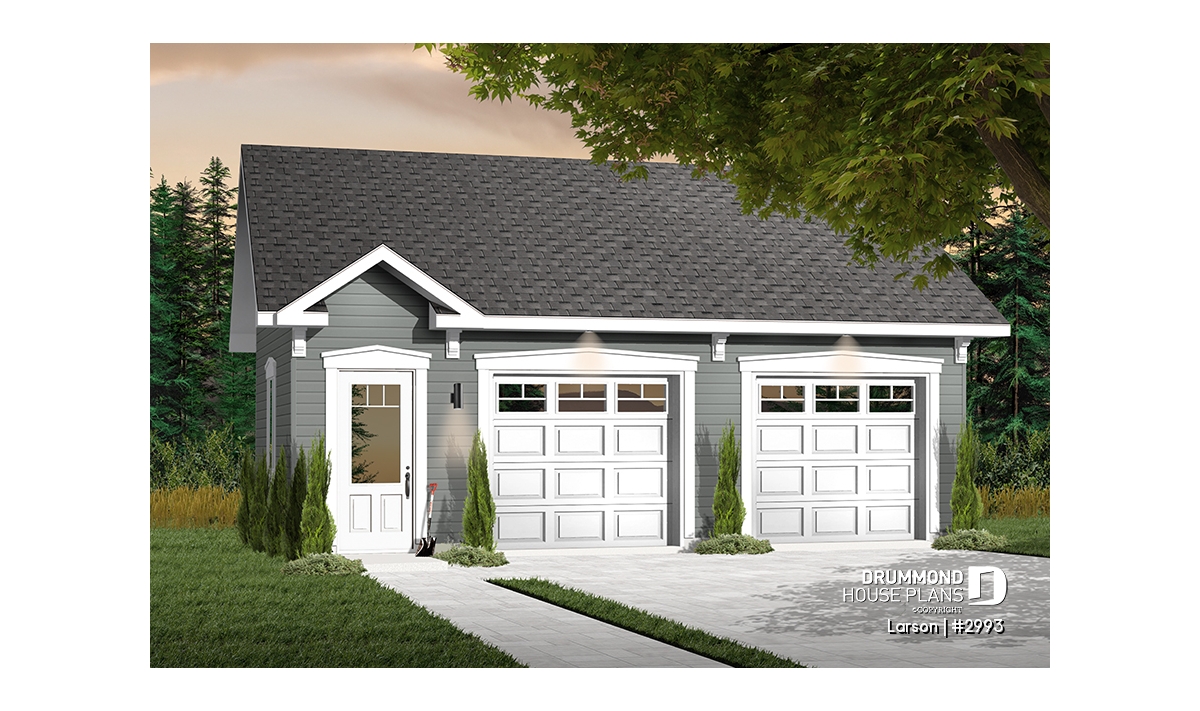 Discover our servicesThis 616 sq. ft., 2-car garage includes plenty of storage for garden tools and more. Simple, functional, and nicely detailed.