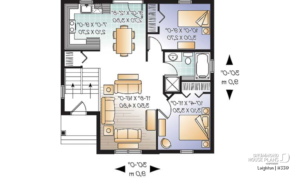 The main floor layout is straightforward and efficient. It includes two well-proportioned bedrooms, ideal for a primary bedroom and a secondary room, as well as a full bathroom with both a separate bathtub and shower, offering everyday comfort. The living room, generous in size, provides a versatile space that can be easily arranged to suit different lifestyles and furniture layouts.