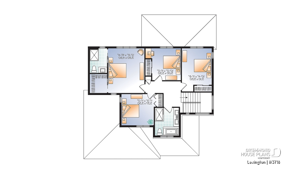 Upstairs, the 4 bedrooms include a master suite with walk-in closet and a full bathroom. The other 3 bedrooms share a second full bathroom that boasts a double vanity, pedestal bath and large shower enclosure.