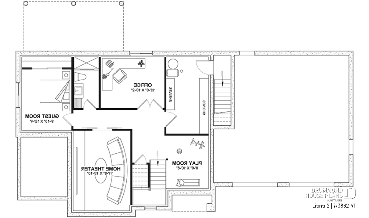 Daylight basement with a home theater as well as a games room, a guest bedroom, an office, a shower room and storage.