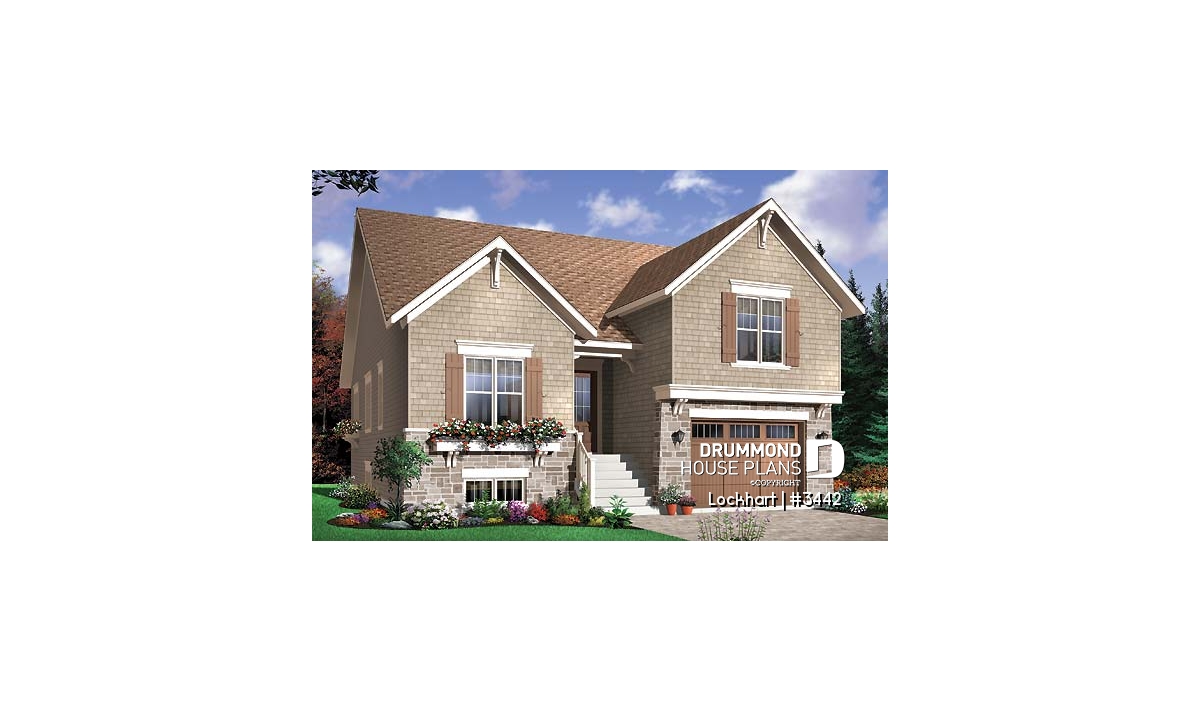 Well-centered fireplace at rear and triple patio doors on each side. Kitchen with well-dimensioned lunch counter work island. Nice master suite above garage with a sloped ceiling and integrated storage as well as a large walk-in closet.