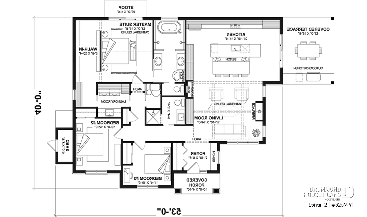 Several decorative arches are inserted into the interior architecture (front entrance, master bedroom entrance and living room).