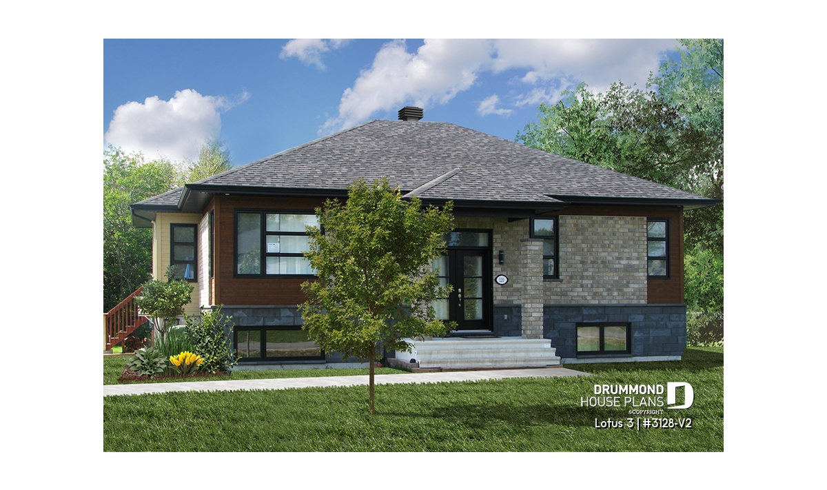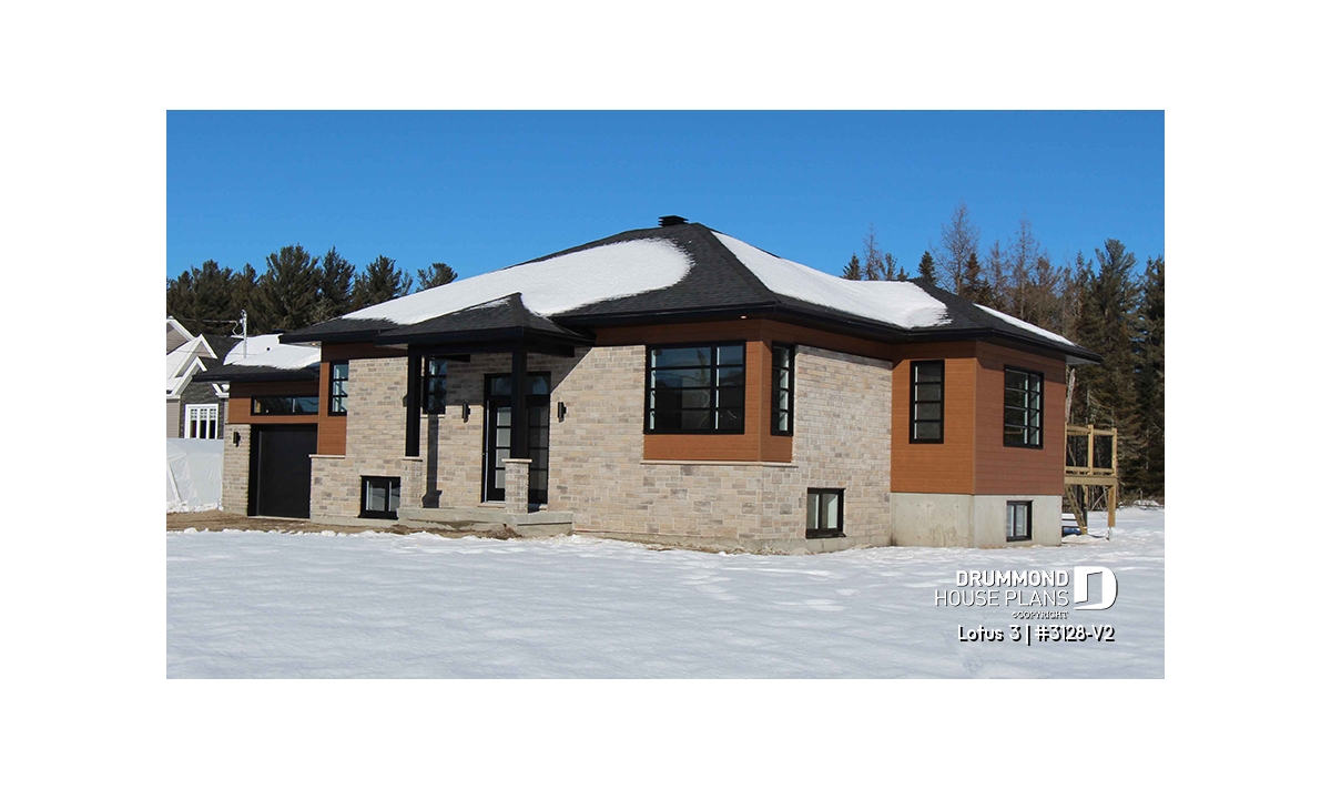Abundant windows in the main living area. Kitchen with a central lunch island. Bathroom with a separate 3 ft x 4 ft shower. Closets at both the main and the garage entrances. Garage with stairs to the basement.