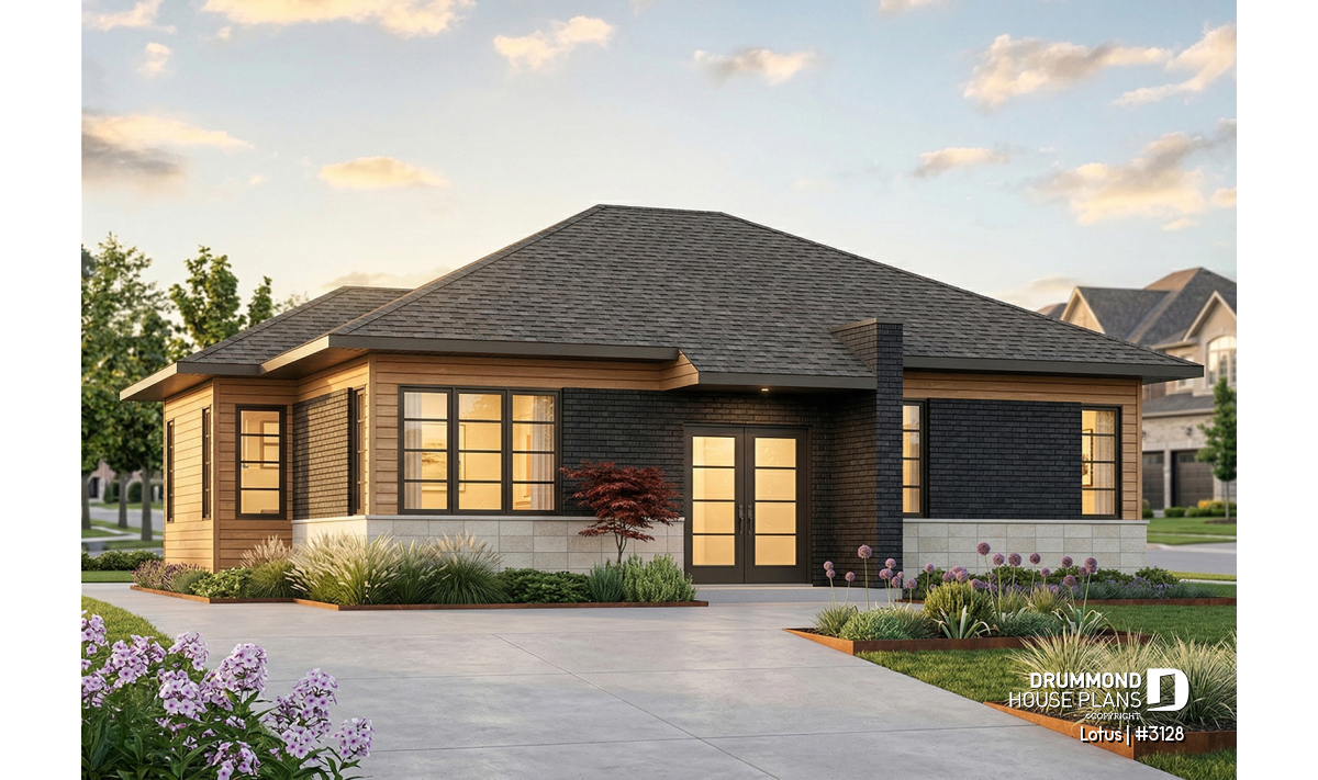 With its contemporary design, bright open layout and substantial expansion potential, the Lotus house plan (#3128) delivers a smart, well-balanced residential solution. It is ideal for homeowners seeking a modern single-story home that combines comfort, efficiency and flexibility for the future.