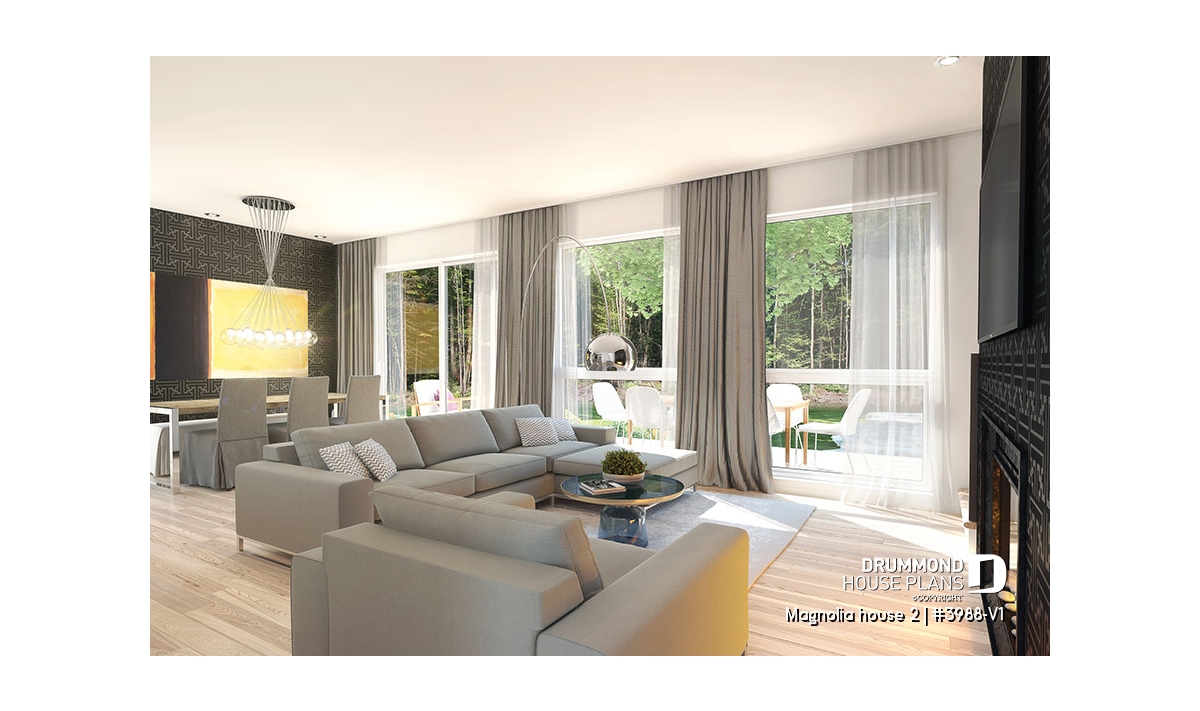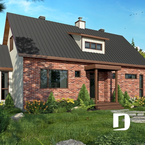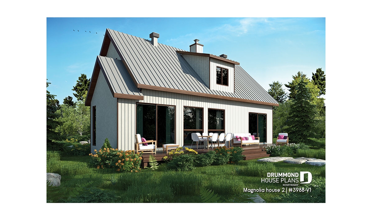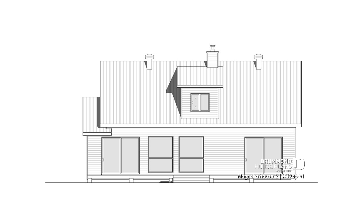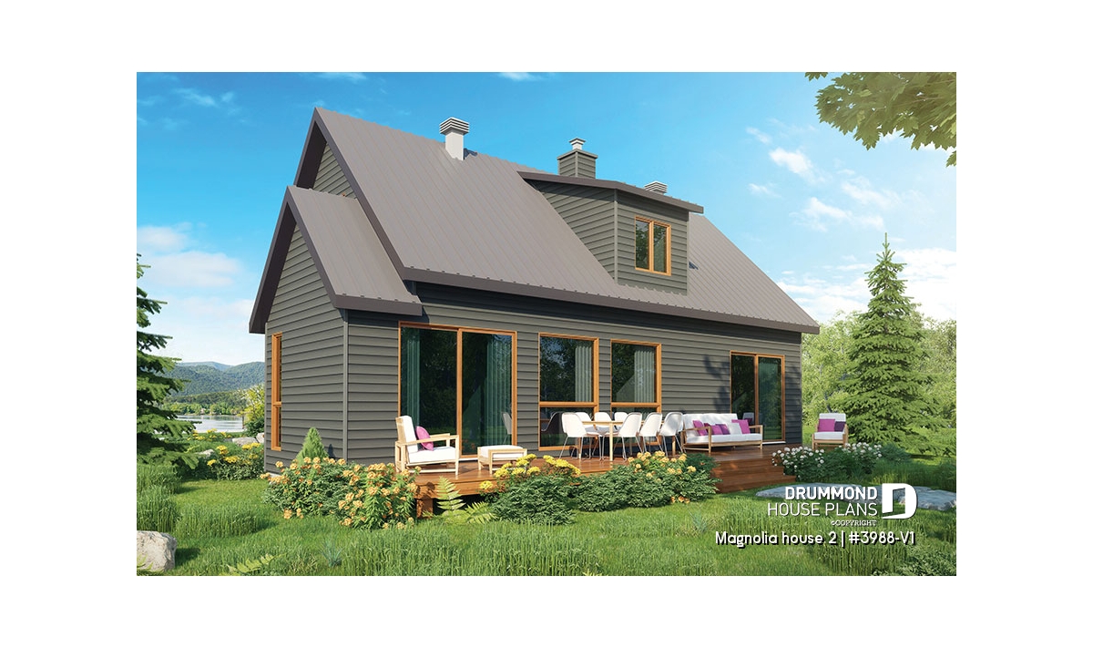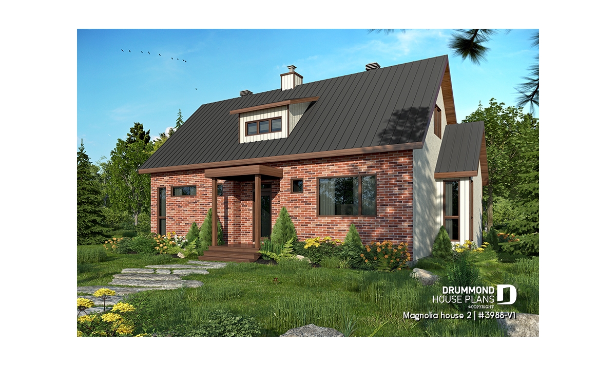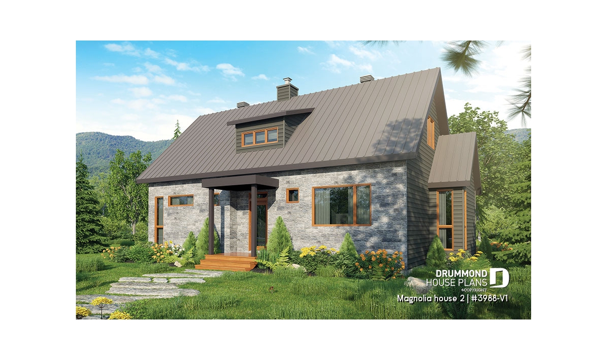 This versatile model is an updated American style farmhouse or country cottage. Whether for a vacation home or a main residence this charming home offers a minimalist approach in natural tones that blend in well with its environment. The many windows throughout enhance passive energy by optimizing natural light.