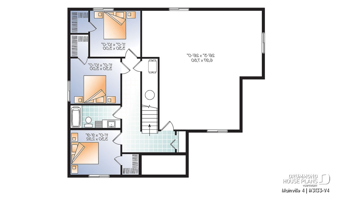 The ‘high profile’ design permits ample fenestration for the three almost 11’ x 10’ bedrooms, each with its own walk-in closet. A complete bathroom and a large space that can be finished as a game or multi-media room enhance the livability of this well thought out floor plan that is perfectly adaptable to today’s blended families