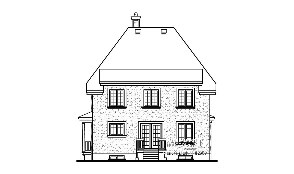 First designed to answer to the needs of a family of five including three children and for which each child must have their own room, this beautiful country manor also possesses the quality of fitting on a narrow lot, even when enlarging the garage from a single to a double; this certainly remains a big plus.