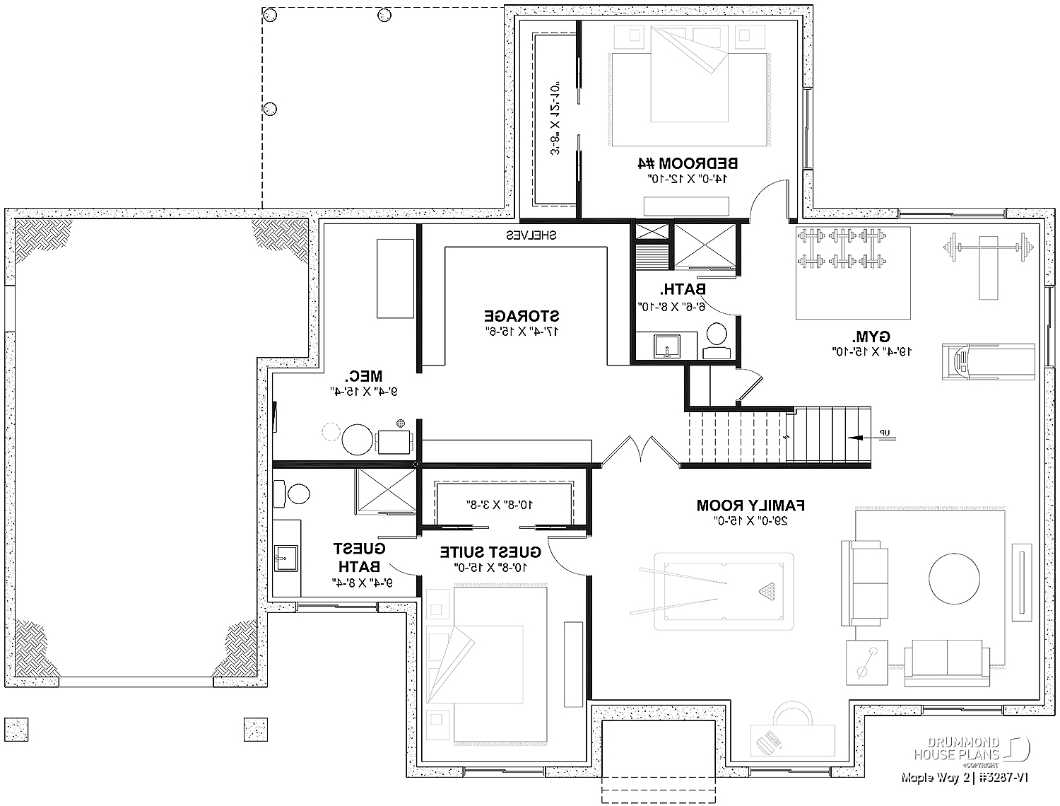 To add a garage, another bedroom, finish the basement or any other modification, click here and let us know about your desired changes and to get your free quote for the modification of your plan.