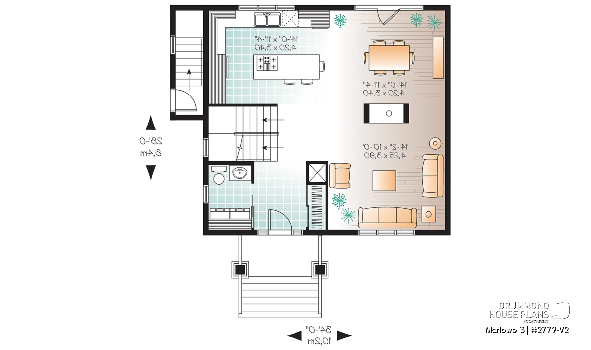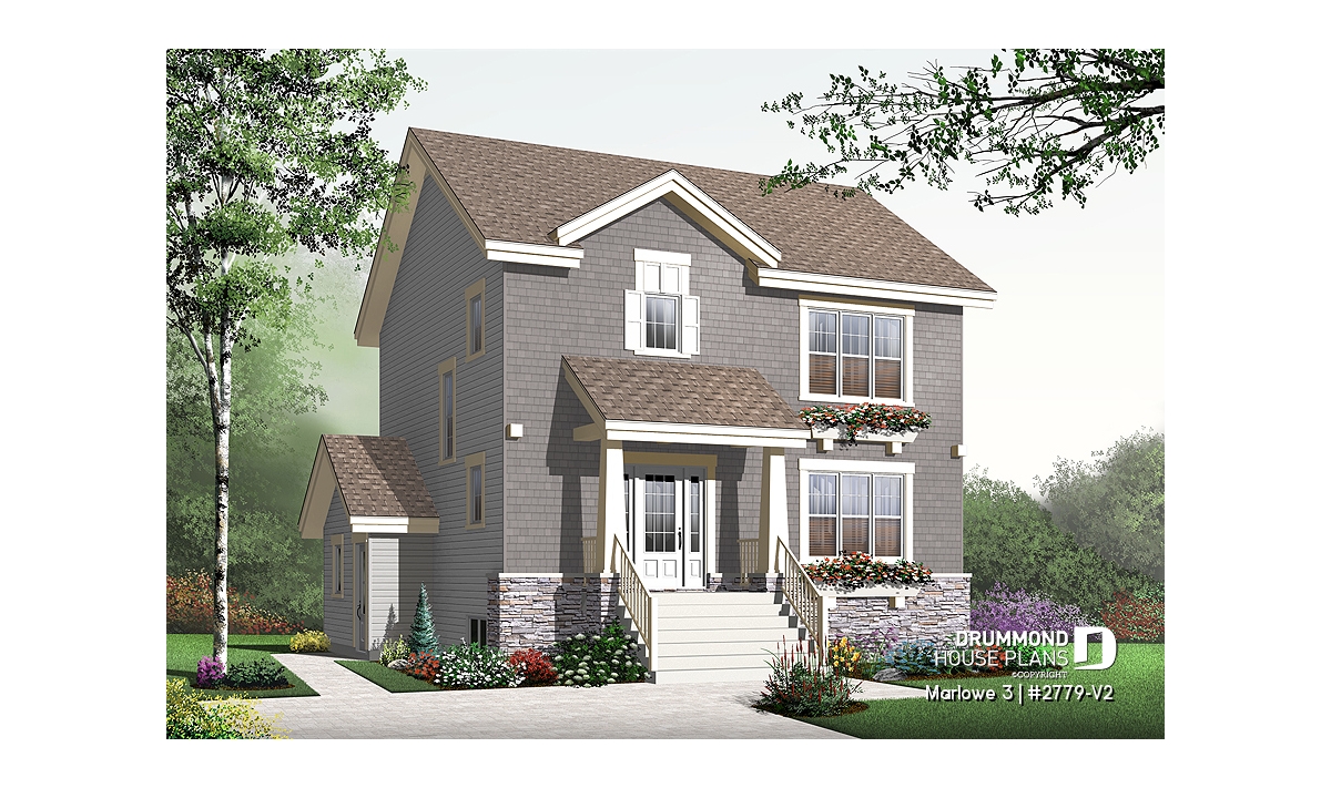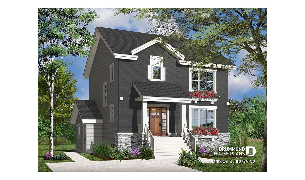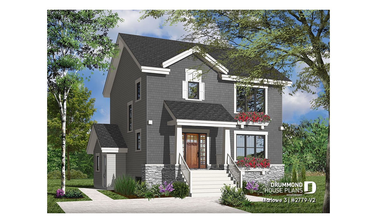 When you need a lot of house in a little space, this model fits the bill! A mere 33' wide, the main floor is dedicated to open concept living. The living and dining rooms share the warmth of a two-sided fireplace. The large kitchen is a dream to work in with ample storage and a large island with eating bar. A laundry room / half bath are conveniently and discreetly located near the entry.