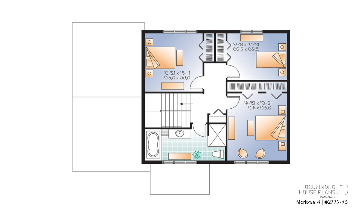 Three bedrooms upstairs and bathroom with independent 40"x54" shower.