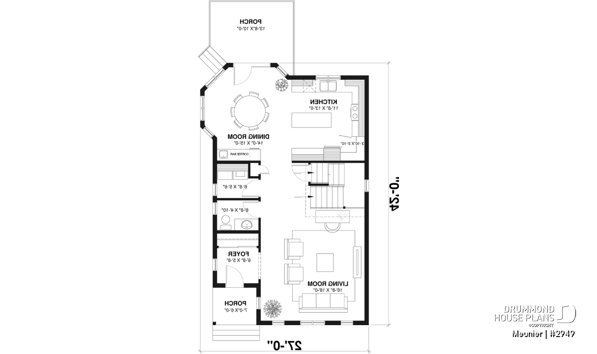 Entrance hall, Gound floor laundry room, Lunch counter, Pantry, Separate bath and shower, Loft, Sloped ceiling, Narrow lot, Coffee bar