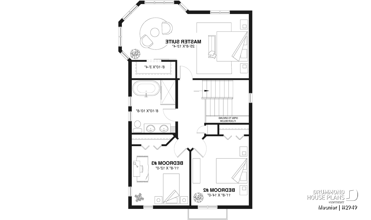 Master bedroom upstairs with reading corner and television.