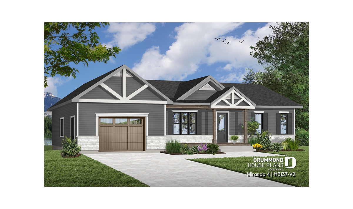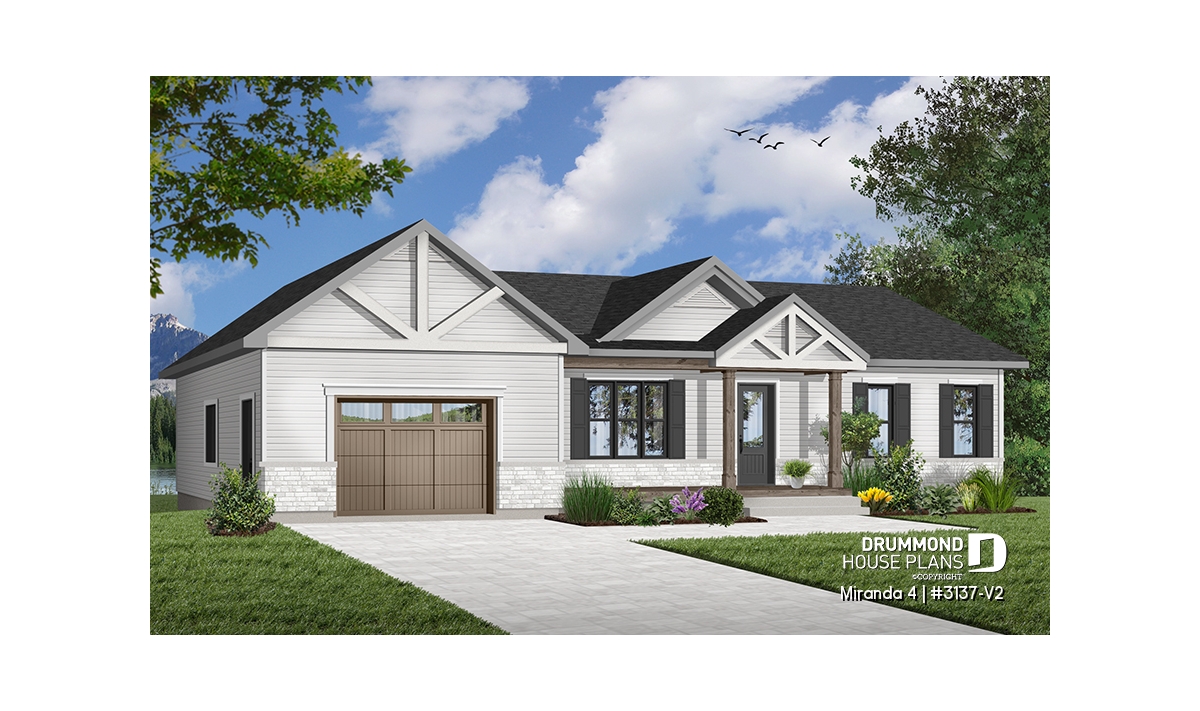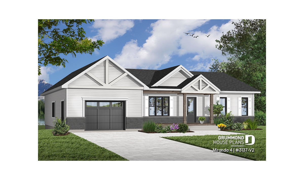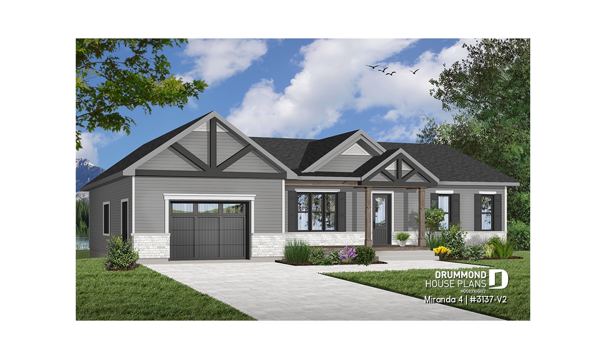 The Miranda 4 house plan (#3137-V2) is a charming single-story ranch home that blends a modern rustic farmhouse look with a highly affordable price point. Thoughtfully designed for first-time homebuyers and young families, this plan delivers comfort, functionality, and long-term flexibility—without unnecessary extras.