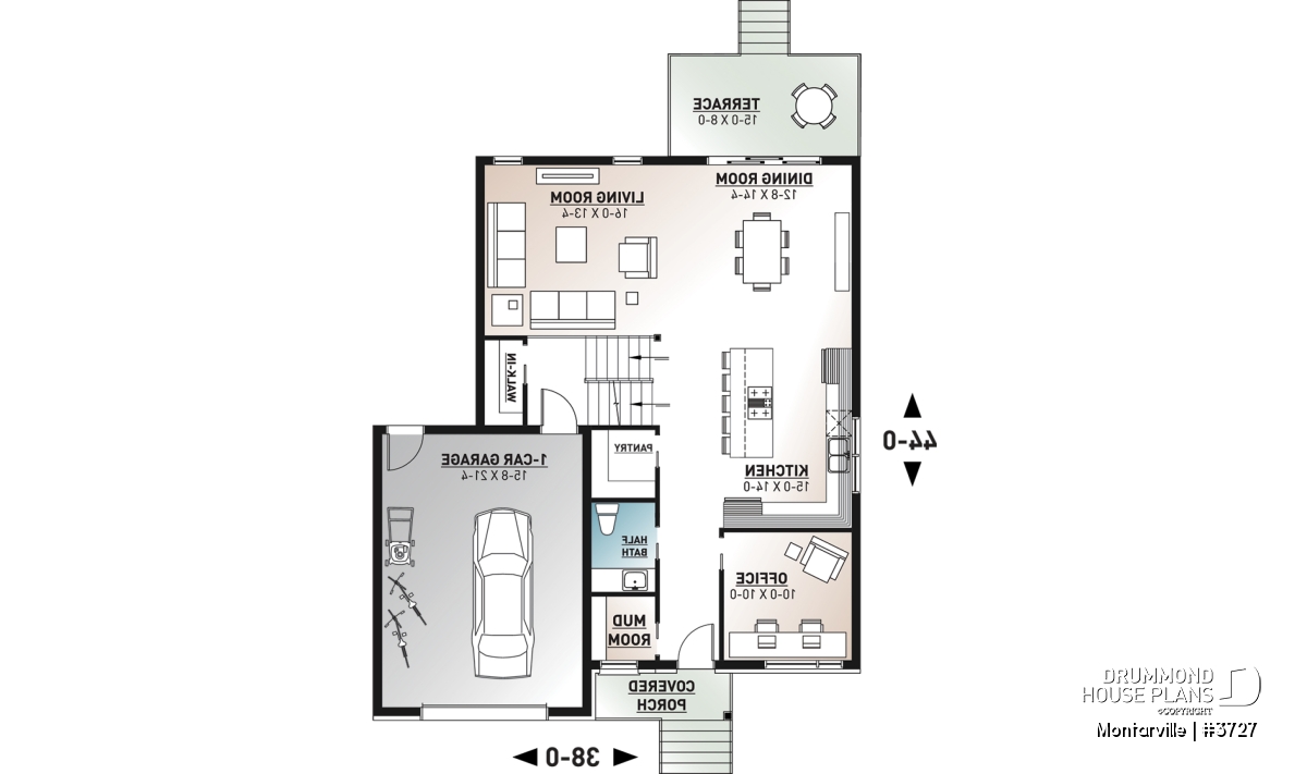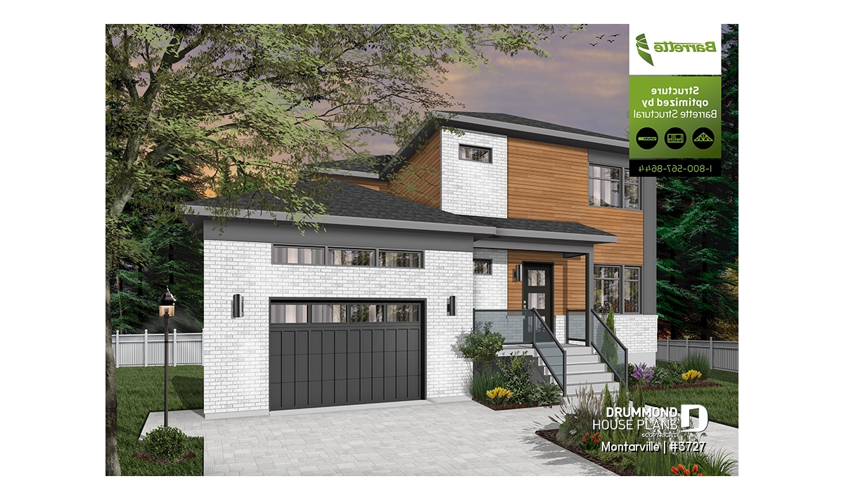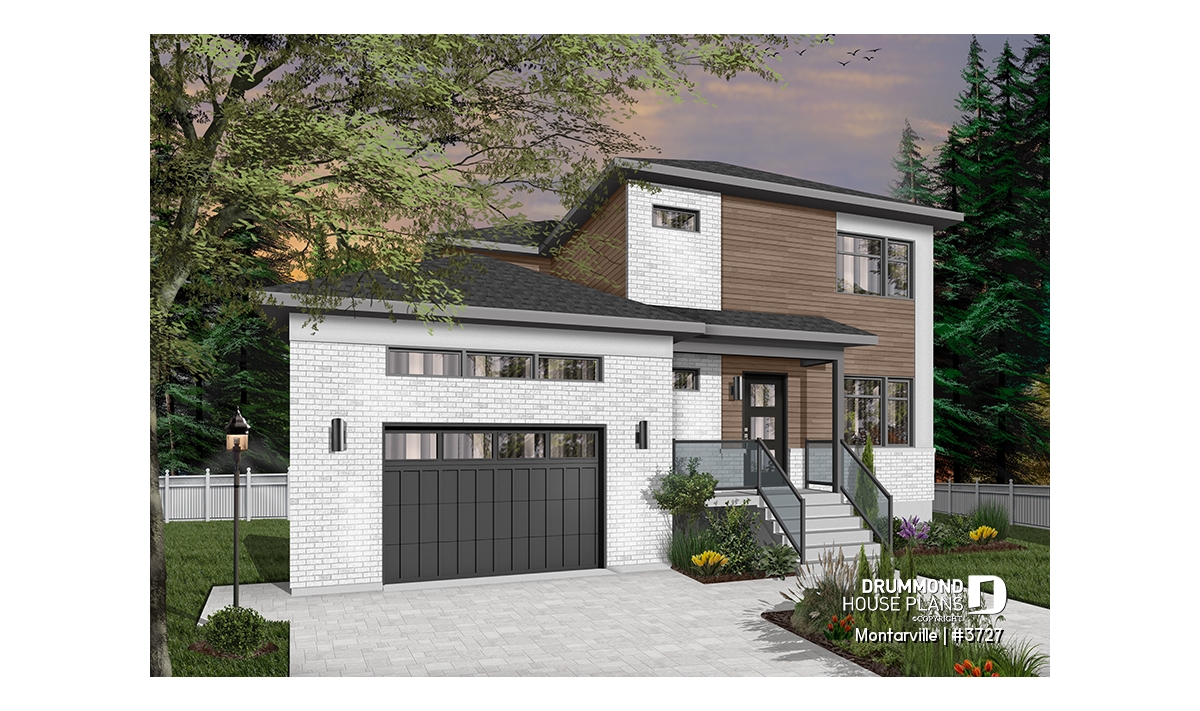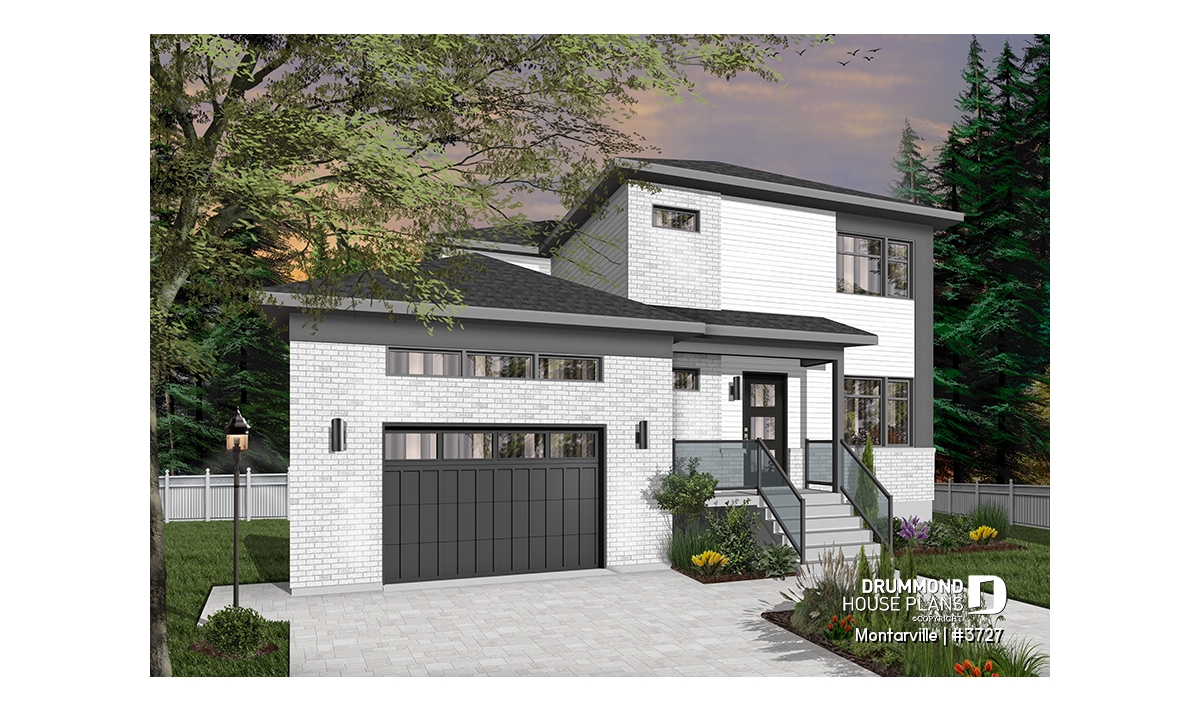 We invite you to discover this new modern style home plan with garage, our plan number #3727 also named MONTARVILLE. We truly believe you will appreciate the big open space and the many amenities that offers this 2110 square feet house plan. With its contemporary style, this home offers 3 to 4 bedrooms on the second level in addition to an open space concept in the common areas on the main level.