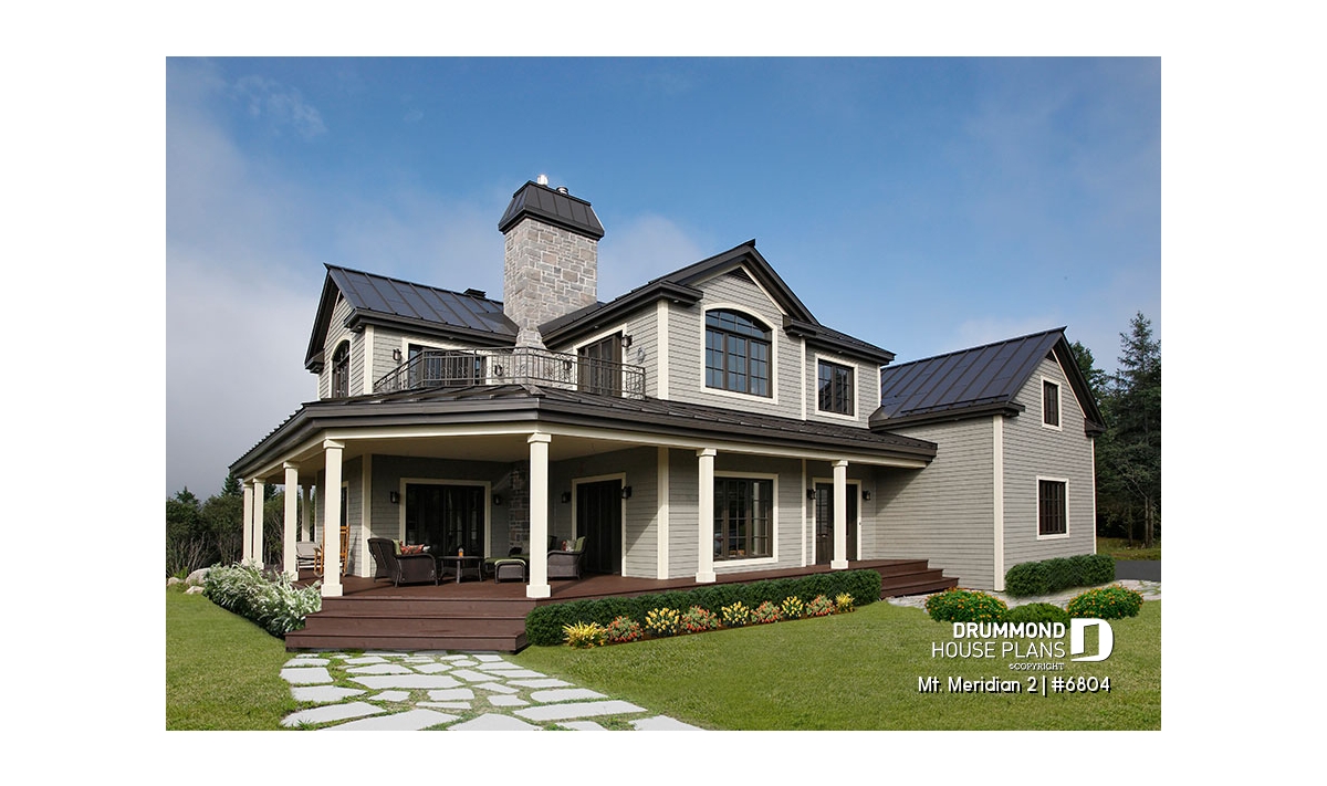 This home is a celebration of exterior and interior spaces. A generous covered entry transitions to a covered social deck and then lures one all the way to the back. This veranda allows for sheltered enjoyment and conversation areas as well as providing the main floor protection from the midday sun. Contrasting siding and trim accentuate the lines of the house including a stately double chimney. The double garage is discreetly accessed from the side.