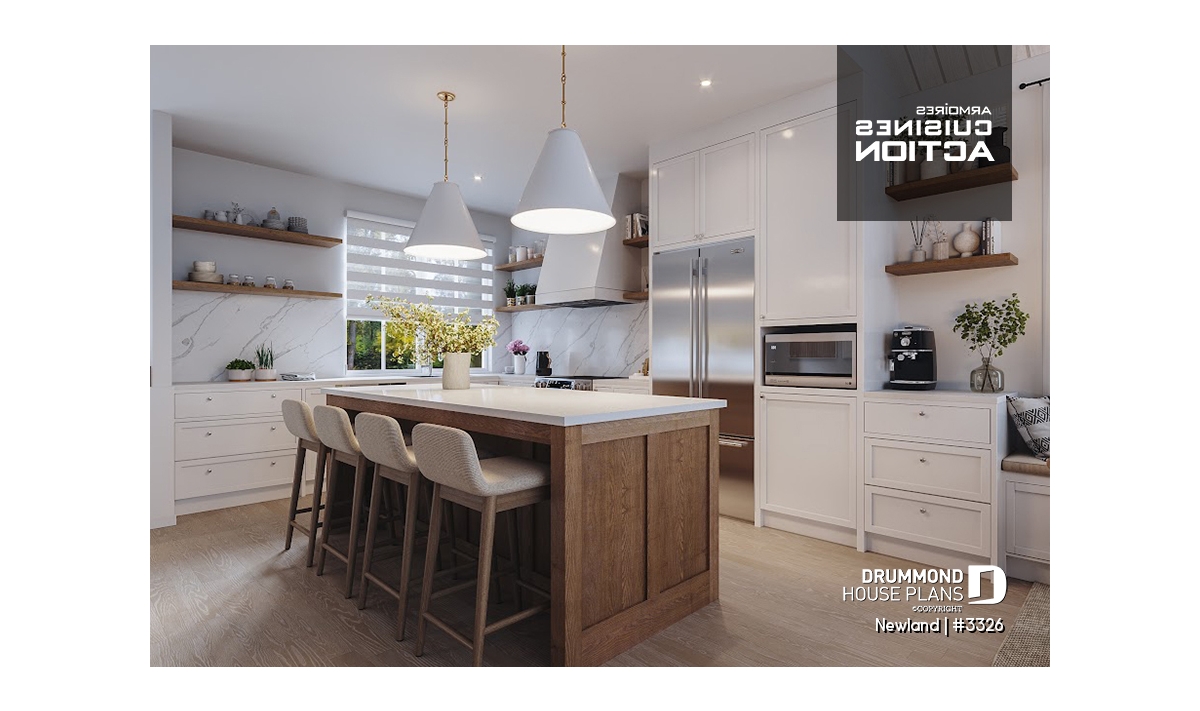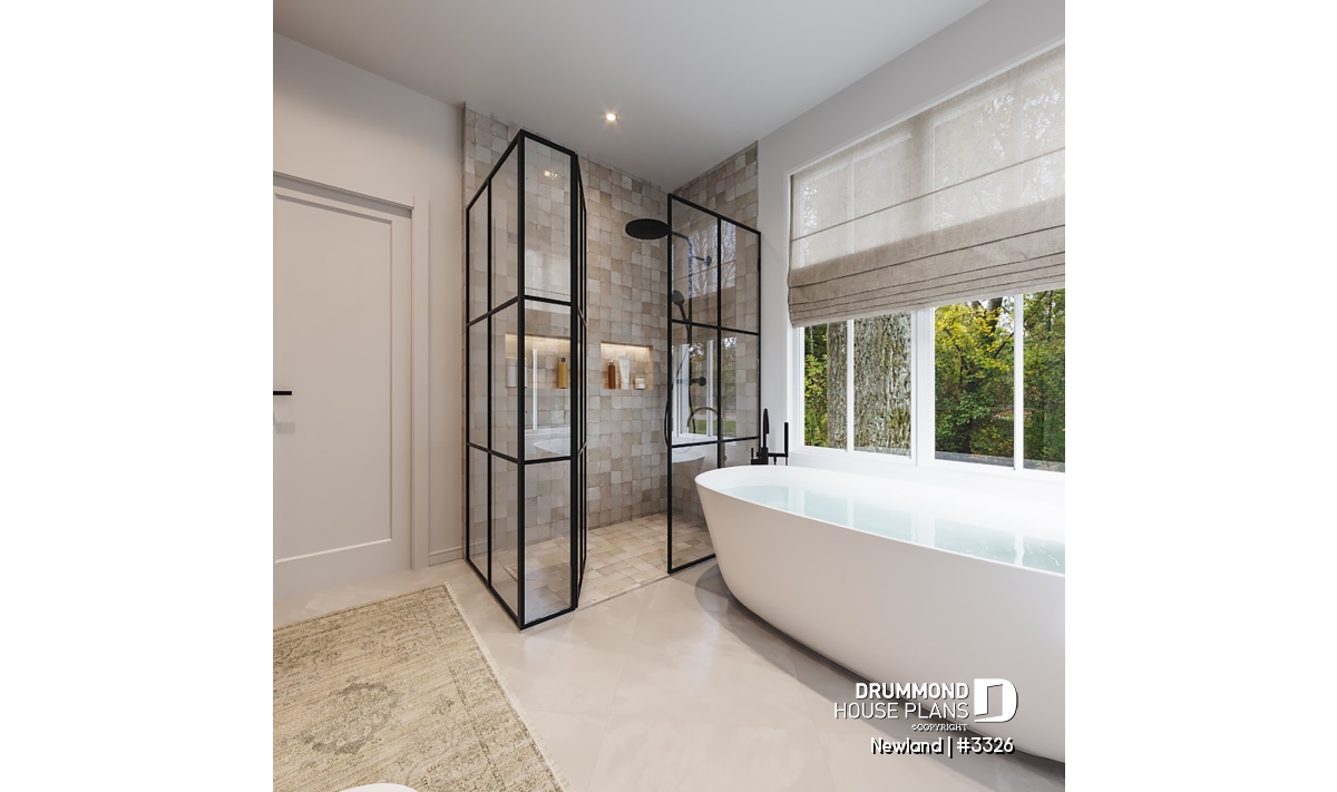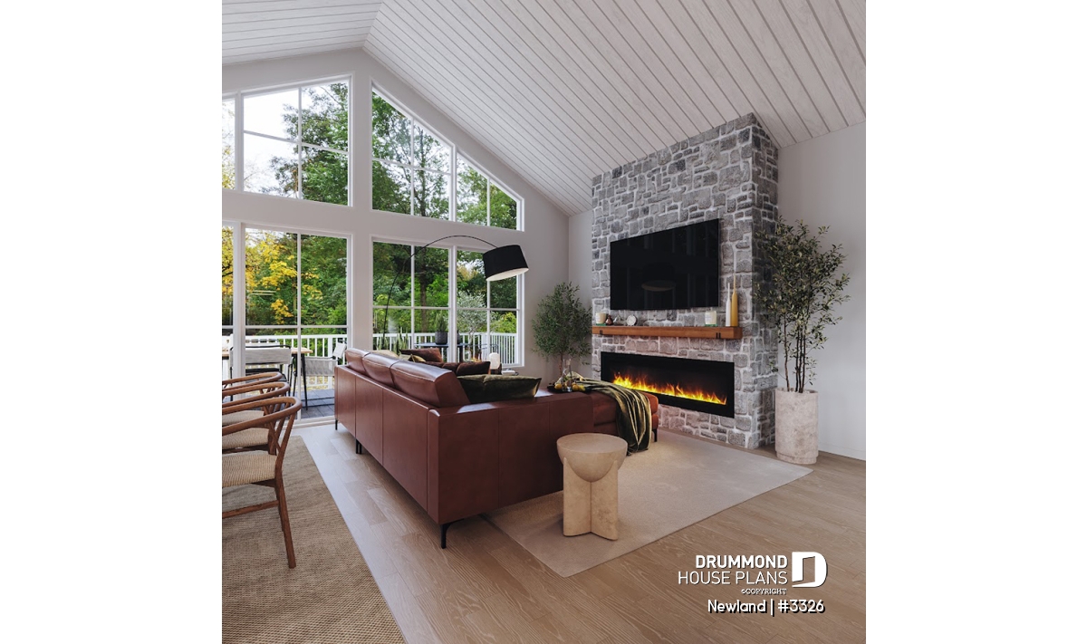 The NEWLAND house plan (plan #3326) offers 1970 sq.ft. arranged on two floors. At a first glance, this plan offers simple lines and architecture, the presence of stone on the facade as well as wood at the exterior front entrance will charm more than one! And what about the back of the house... WOW!!! So let's go in...