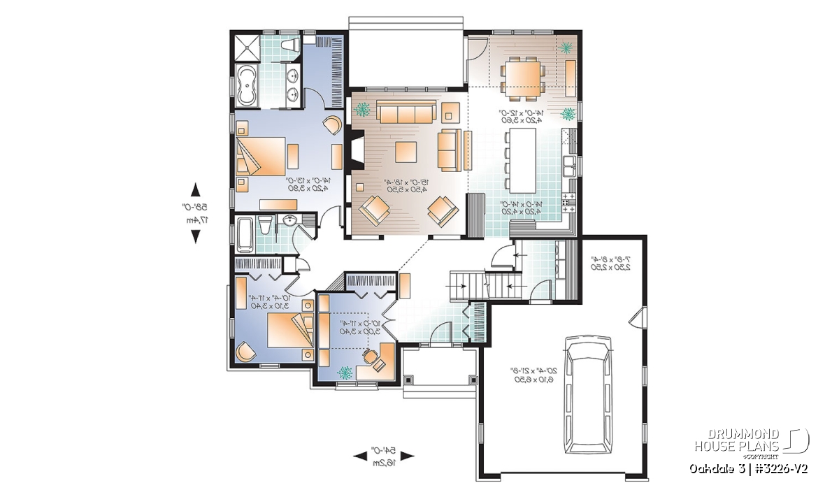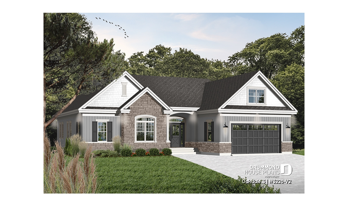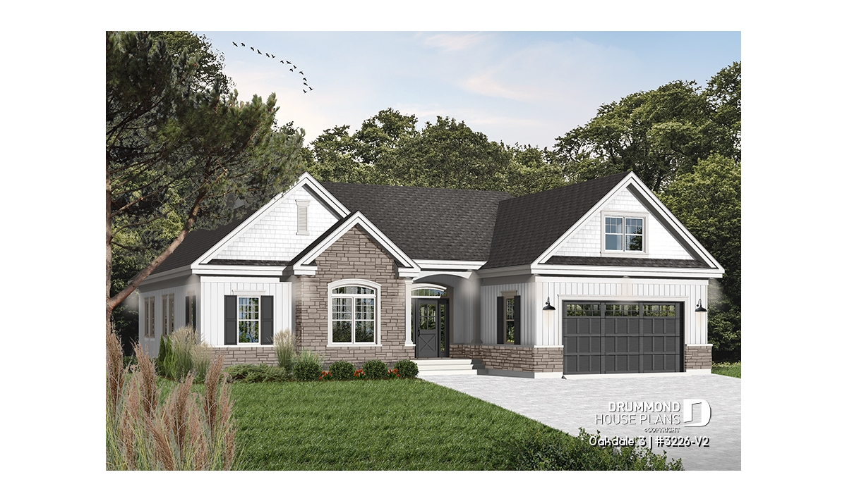 Ranch house plan with 2 to 4 bedrooms and bonus room.
