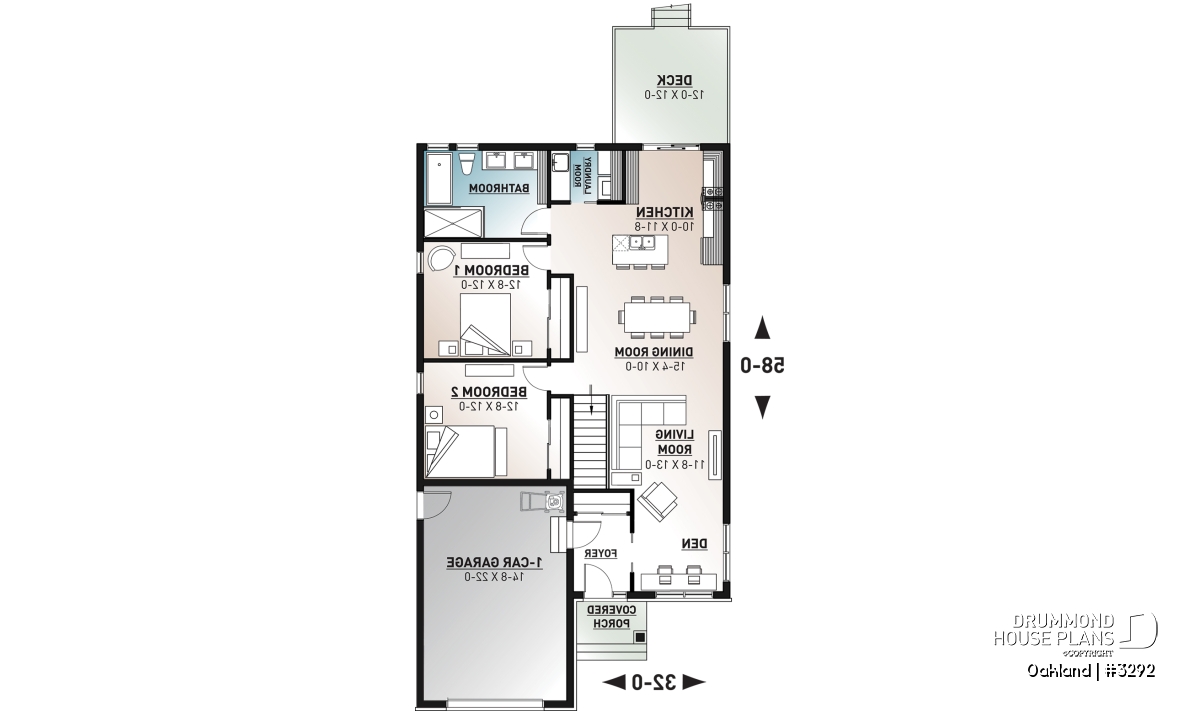 Ideal layout for narrow lot.