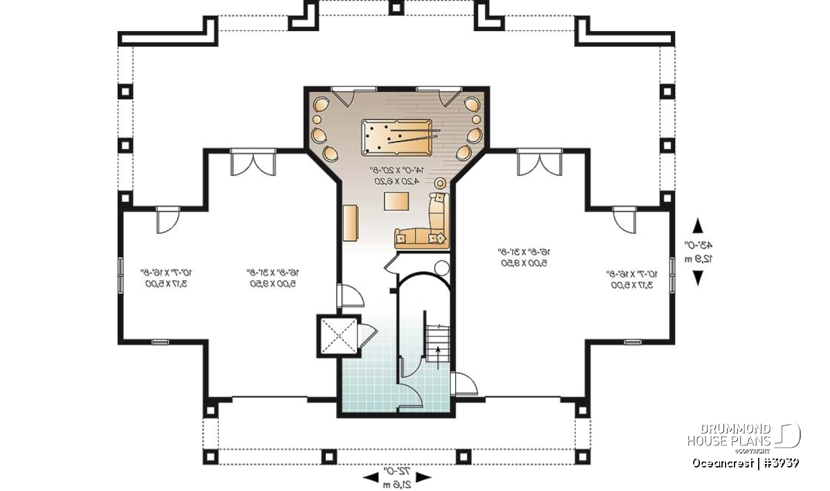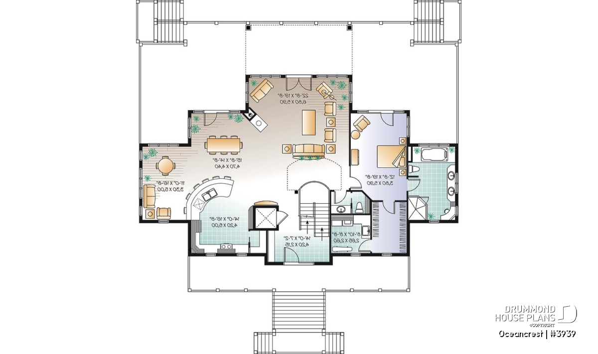 The ground floor consists of a central games room, grand staircase and elevator flanked by dual garages with generous storage. A loggia provides cool spaces at the height of day and dual staircases balance the look of the upper deck access.