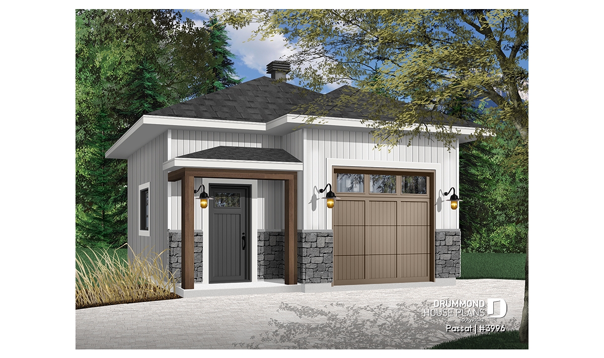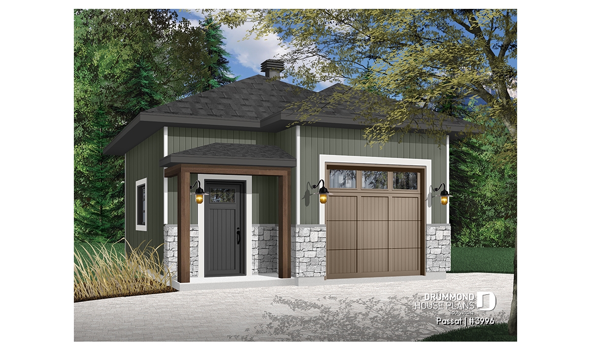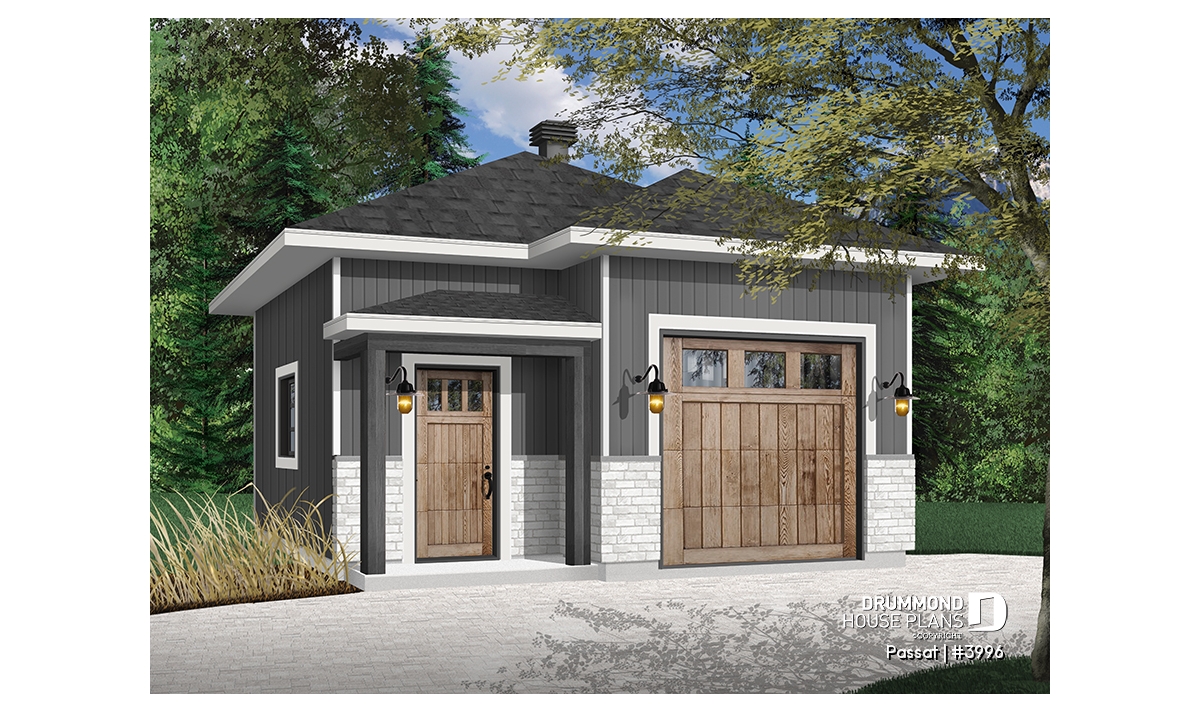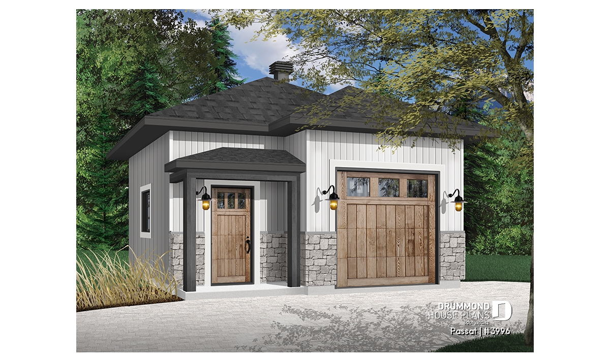 Designed as a single-car garage, the Passat (#3996) offers a surprisingly spacious interior, providing ample room not only for vehicle parking but also for storing tools, equipment and seasonal items. One of the key highlights of this plan is its 10-foot ceiling, which allows for efficient vertical storage solutions such as overhead shelving, wall-mounted systems or additional organizational features.