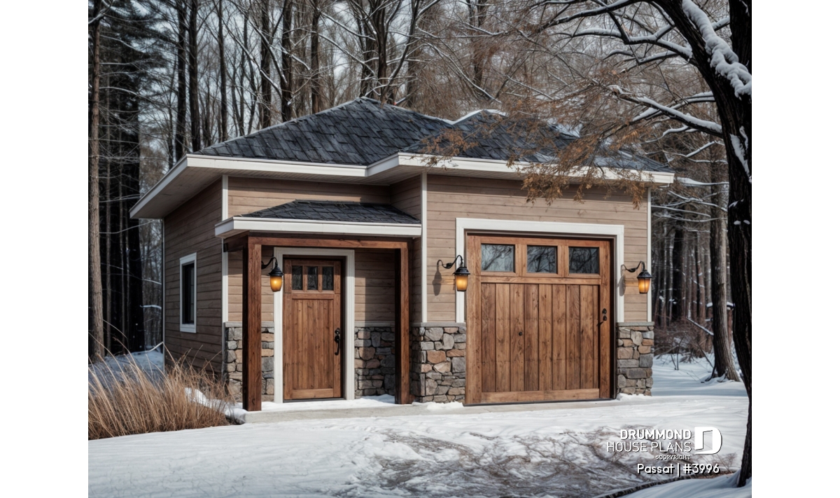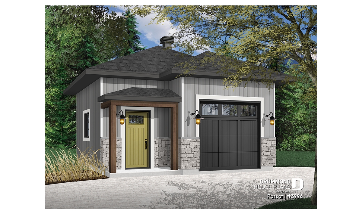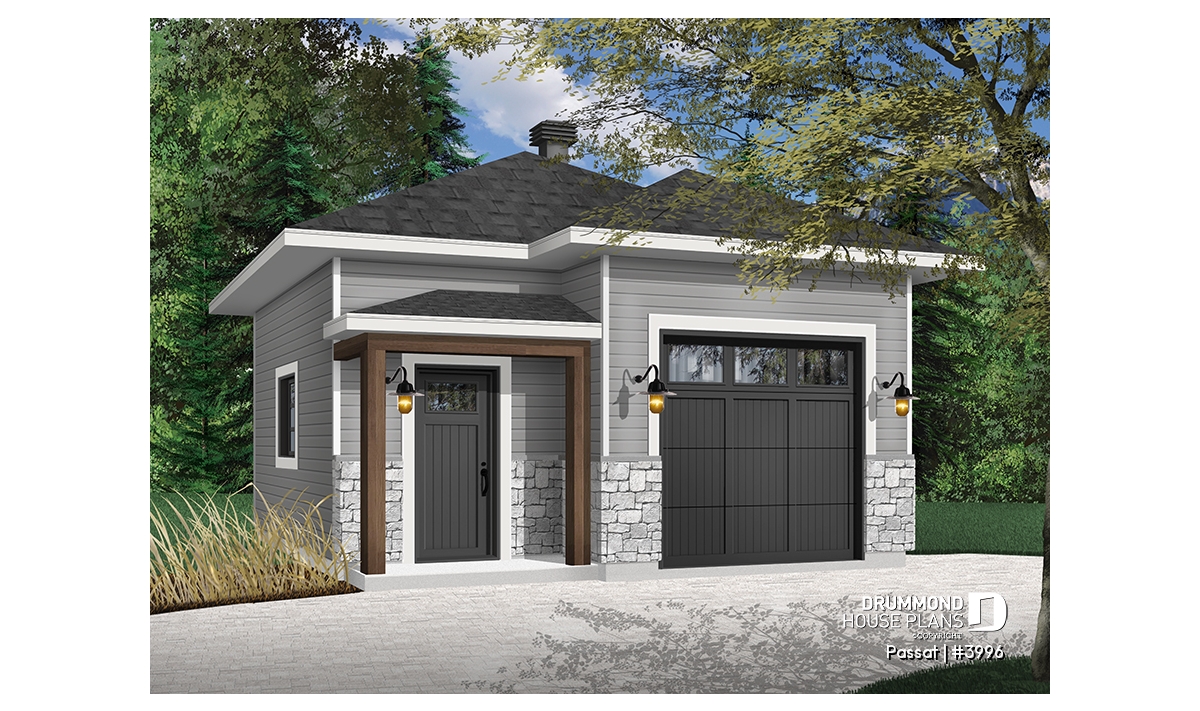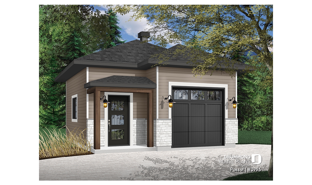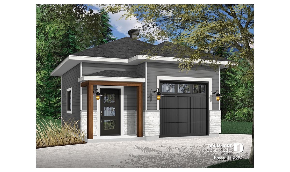 Designed as a single-car garage, the Passat (#3996) offers a surprisingly spacious interior, providing ample room not only for vehicle parking but also for storing tools, equipment and seasonal items. One of the key highlights of this plan is its 10-foot ceiling, which allows for efficient vertical storage solutions such as overhead shelving, wall-mounted systems or additional organizational features.