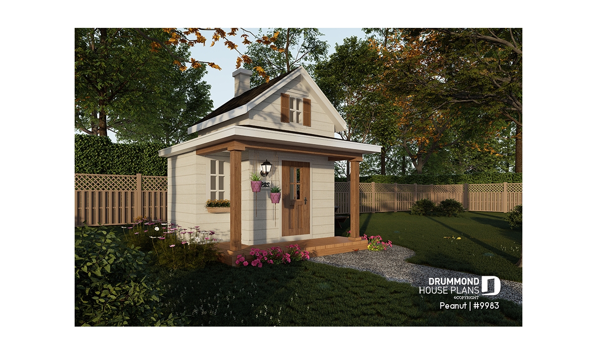 Includes a front door and two windows, one of which features a charming built-in sill.