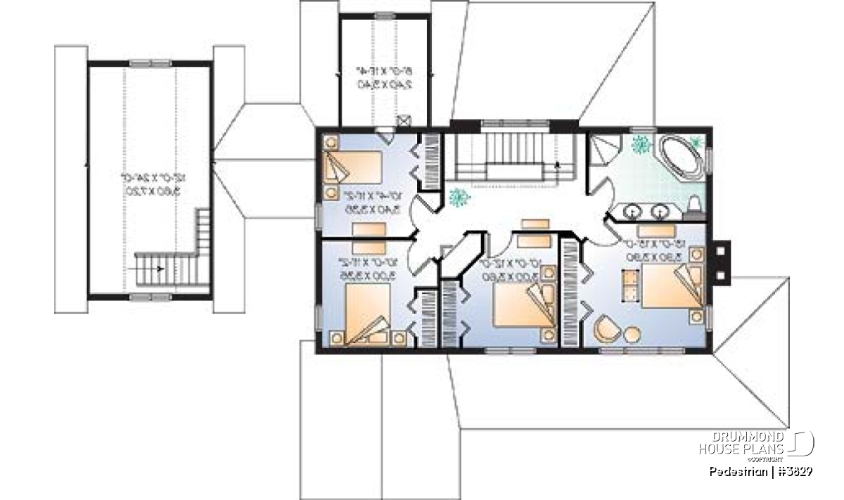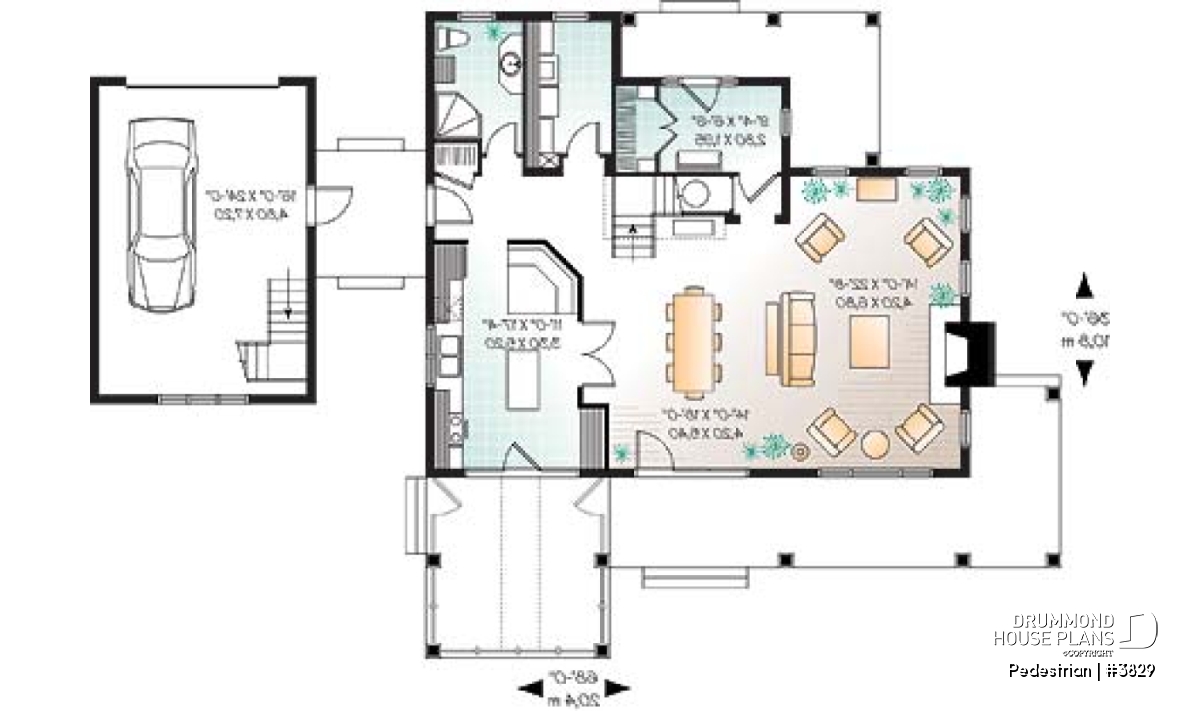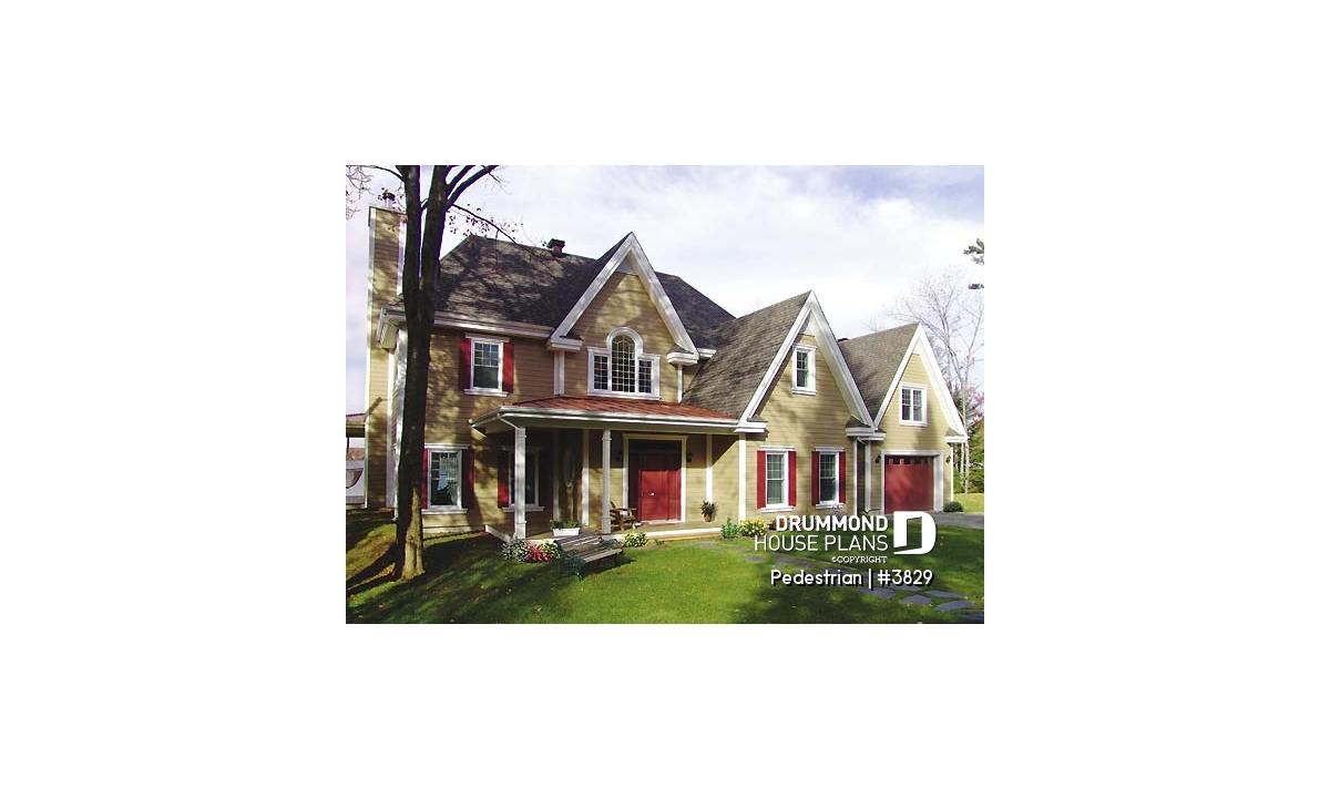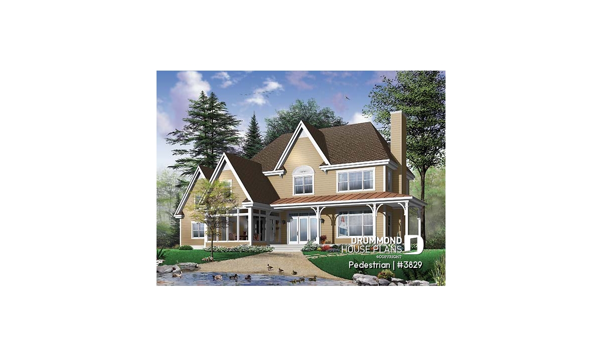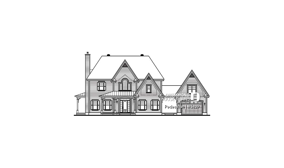 Designed first and above all for a rear view, and more particularly for a waterside, this house proposes four beautiful façades, a covered wraparound gallery, a screened in porch for peaceful exterior dining and a garage with upper storage facilities thereby compensating for the lack of a basement, which is always possible to add depending on the location.