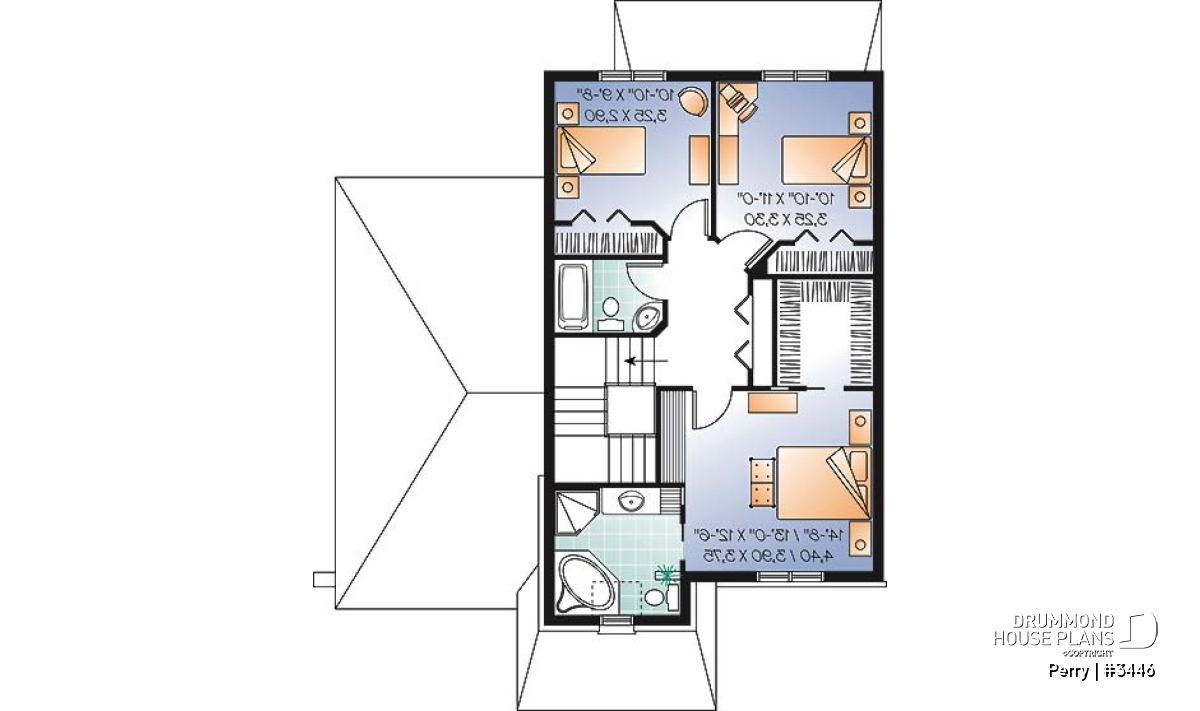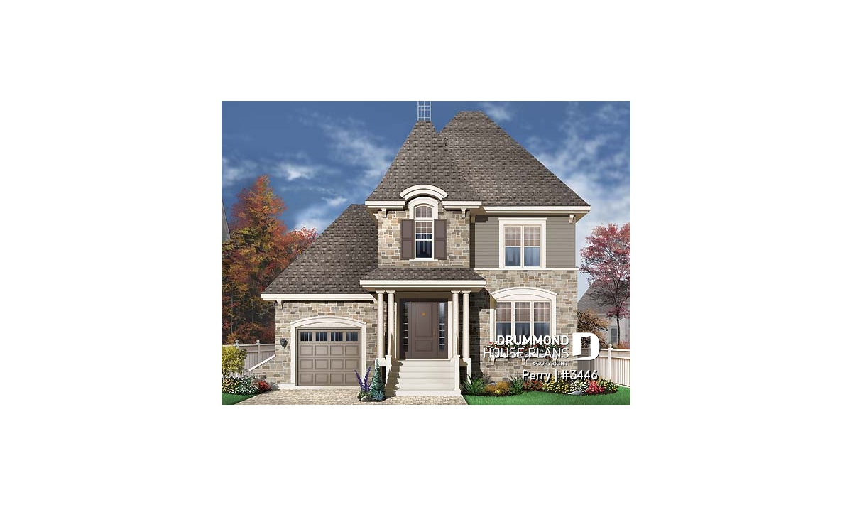 2nd level - 3 bedroom manor style house plan, ideal for narrow lot , garage and great master suite - Perry