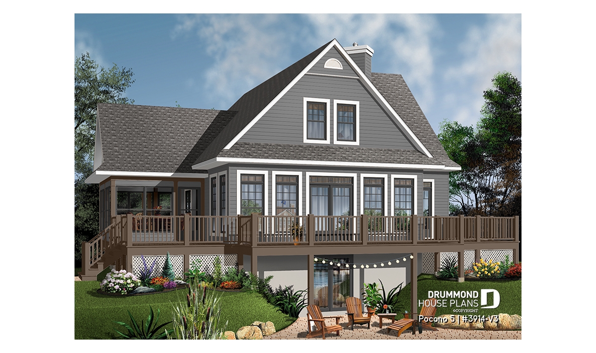If you are looking for a home to capture a view, this model is sure to please. Simple and elegant lines, abundant windows, a screened veranda and wraparound deck... These are only the exterior allures of this model. A further benefit is a front facade just as attractive as the rear thus allowing great flexibility for a wide variety of lot styles.