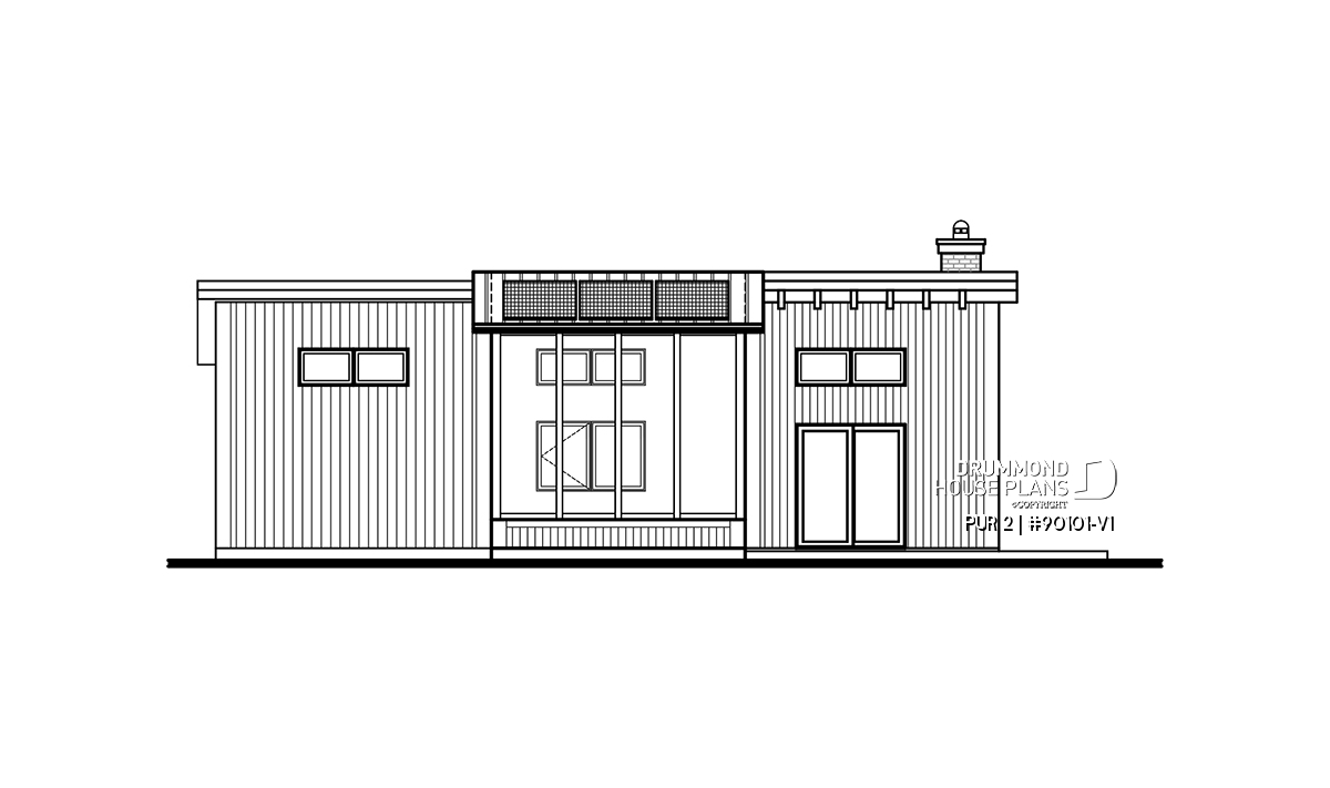 The second evolution or version planned corresponds to the PUR 3 house (# 90101-V2) which consists of adding two bedrooms on the right side. Just remove the window above the office area to create a passageway to access these additional bedrooms. If you are planning to have children, this option is very interesting. In addition, this extension could have other functions such as a training room or an office depending on your needs. For this version the garage is removed, but could easily be added via our modification service.