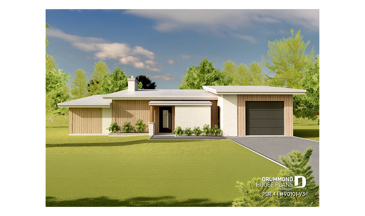 *Small three bedroom eco-friendly and contemporary house plan with garage.