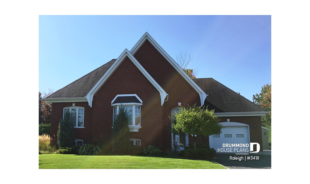Abundant natural light enters through a bay window in the family room, a significant arched window over the main entrance door, patio doors in the dining room and enlarged windows for the rooms in the raised basement, each of which ensures daylight to the lower level.