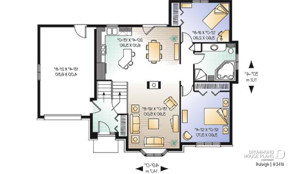 12' ceiling in main entrance. Two-face fireplace in living room and dining room. Kitchen with central lunch island.