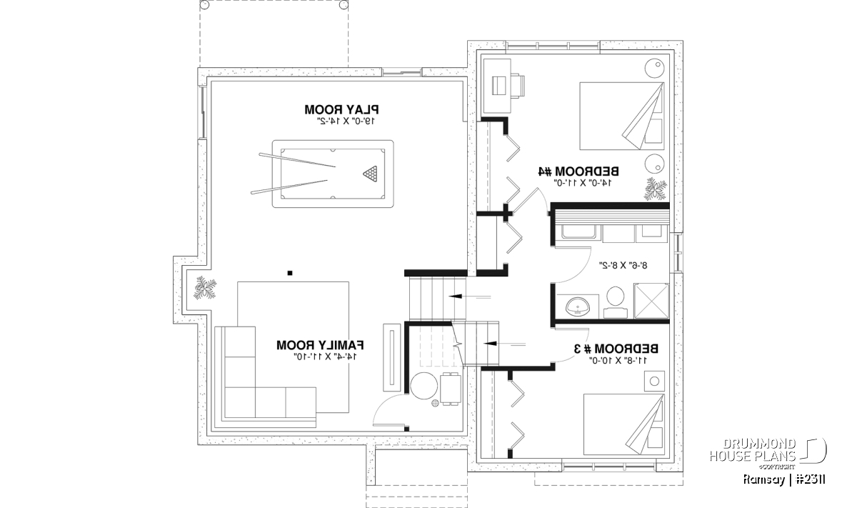 Up a half flight of stairs is a secluded sleeping wing with master bedroom and secondary bedroom being separated by a calming 5-fixture bathroom. Downstairs, we find a family room, a game room, a bathroom / laundry combo and 2 additional bedrooms.